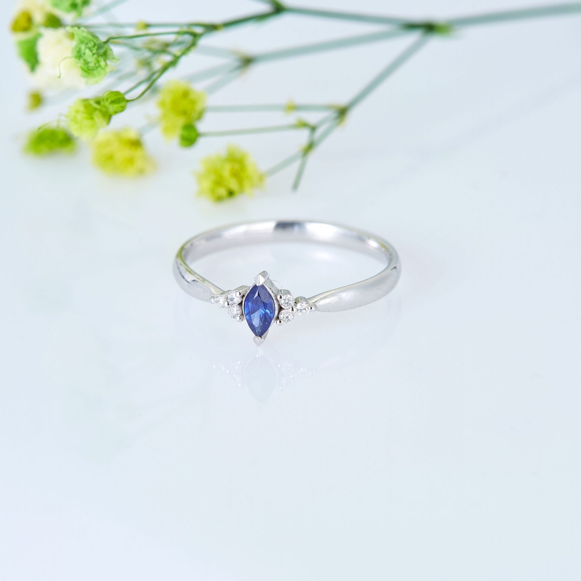 Voller Glanz dieser MEINSCHMUCK farbige Zirkonia Ring aus 585er Weißgold. Sechs klare Zirkoniasteine im Brillantschliff bringen den zentralen blauen Zirkoniastein in Marquise Schliff zusätzlich zum Strahlen. Diese schöne Kombination macht aus dem filigranen Ring ein optisch abwechslungsreiches Schmuckstück, das zu zahlreichen Looks passen wird. Die schmale Ringschiene gewährleistet ein angenehmes Tragegefühl. Dieser wunderschöne Ring eignet sich auch wunderbar als Antragsring oder als Geschenk!
