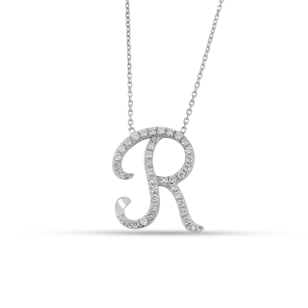 Ein MUST HAVE – diese MEINSCHMUCK Buchstabenkette R aus 585er Weißgold mit Diamanten (ca. 0,20ct.) im Brillantschliff. Man sieht dem Schmuckstück bereits auf den ersten Blick seine hochwertigen Materialien und die ausgezeichnete Verarbeitung an – formvollendet zeitgemäß. Die feingliedrige Ankerkette garantiert einen angenehmen Tragekomfort. Machen Sie sich selbst eine Freude, mit dieser wunderschönen Kette!