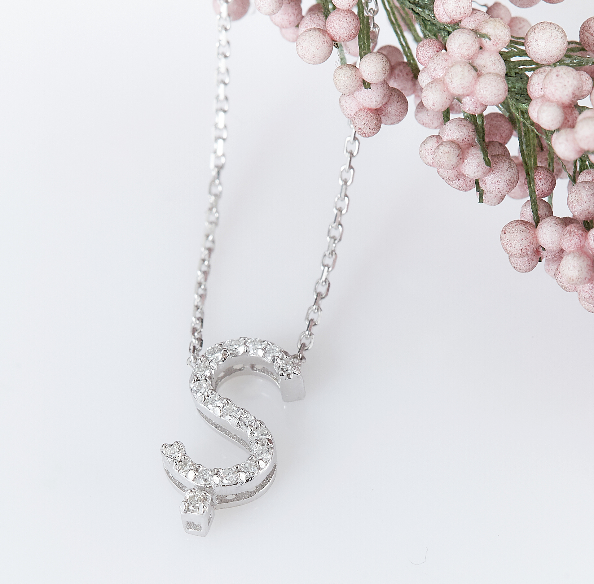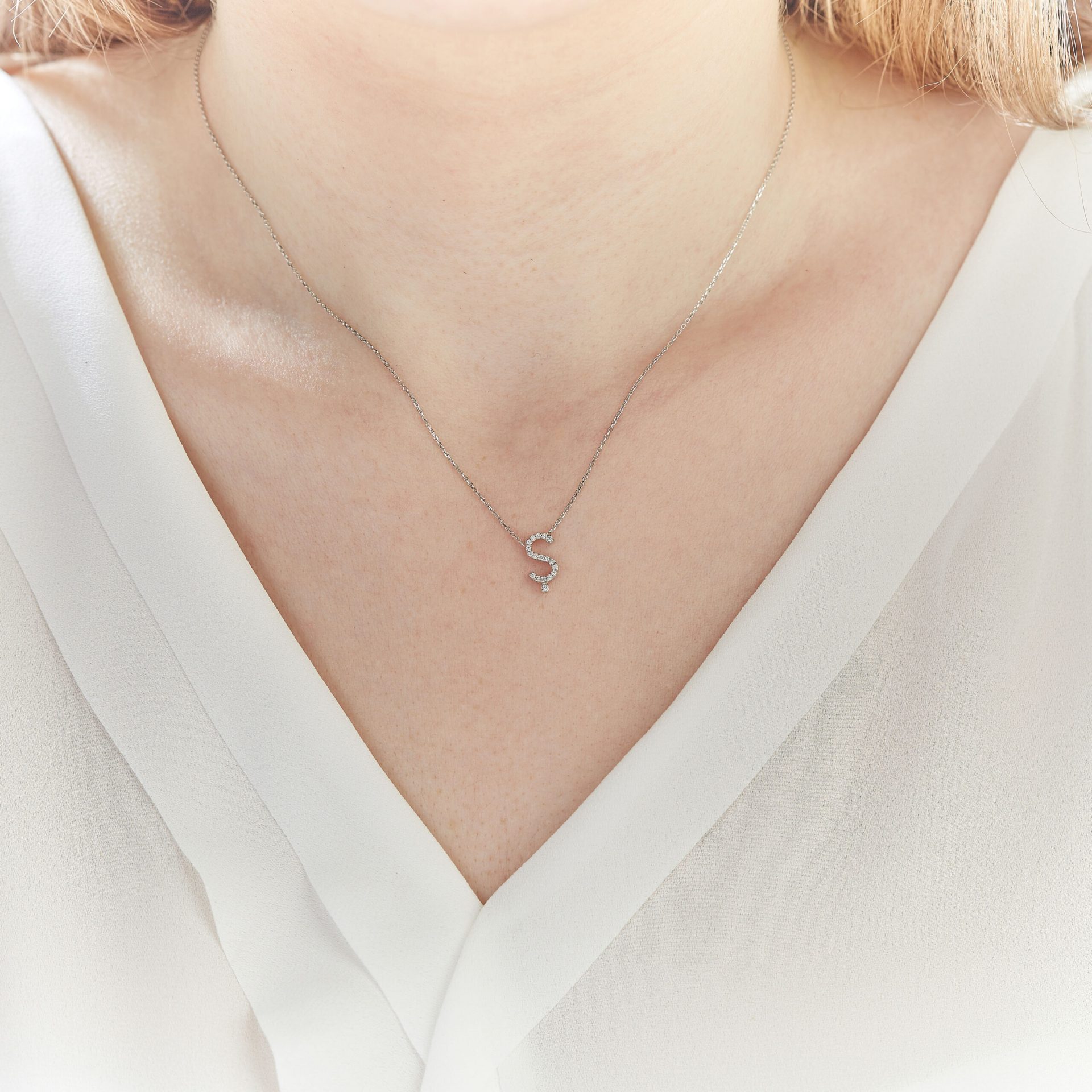 Buchstabenkette S aus 585er Weißgold mit Diamanten STELLARIA