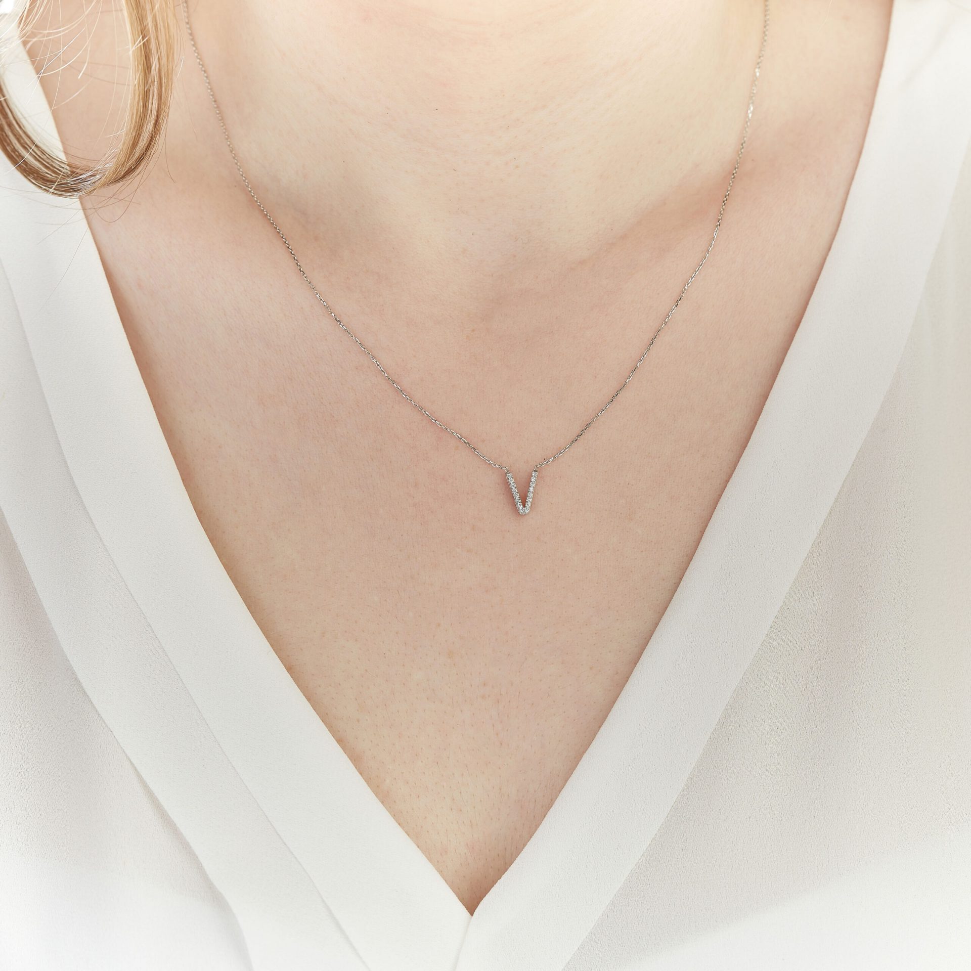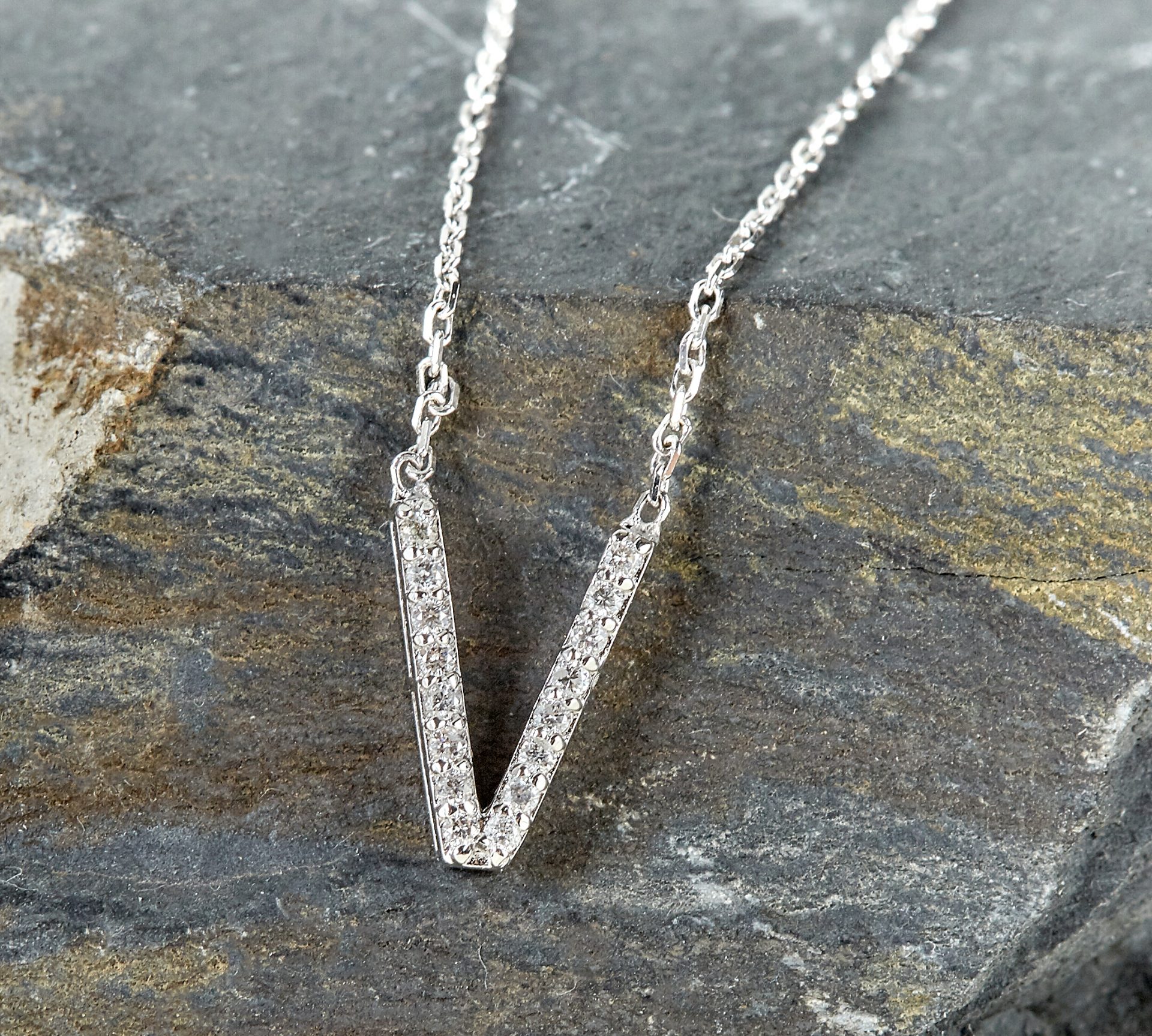 Buchstabenkette V aus 585er Weißgold mit Diamanten VALORIA