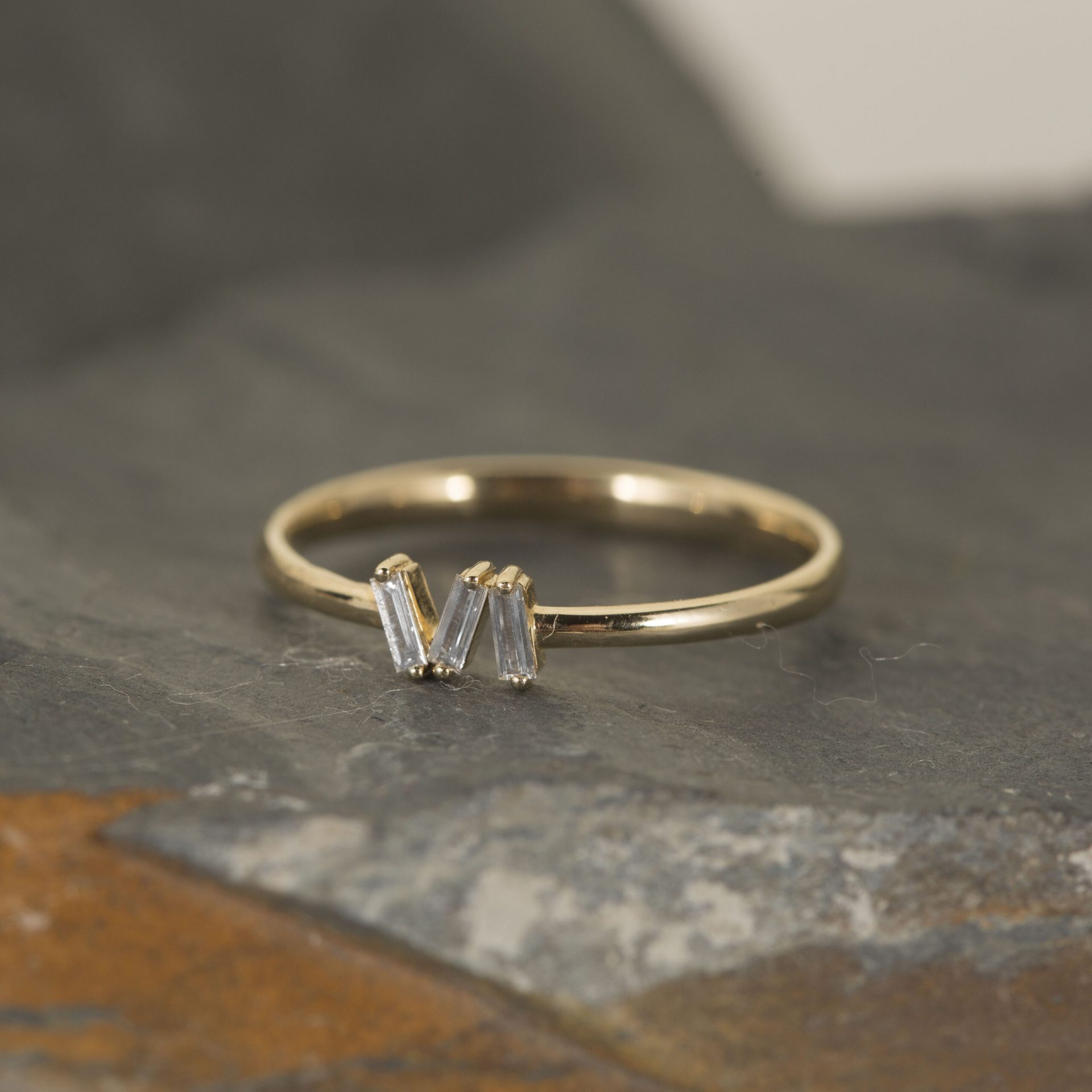 Ein feligraner -MEINSCHMUCK- Diamantring aus 585er Gold mit drei schönen Brillanten (ca. 0,09ct.) in Baguetteschliff im Fokus! Die schmale Ringschiene gewährleistet ein angenehmes Tragegefühl – Sie werden begeistert sein. Dieser wunderschöne Brillantring eignet sich auch wunderbar als Geschenk! Dieser Goldring ist in den Farben Gelbgold, Weißgold und Rotgold erhältlich.