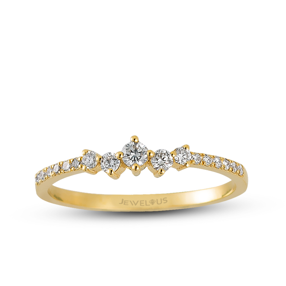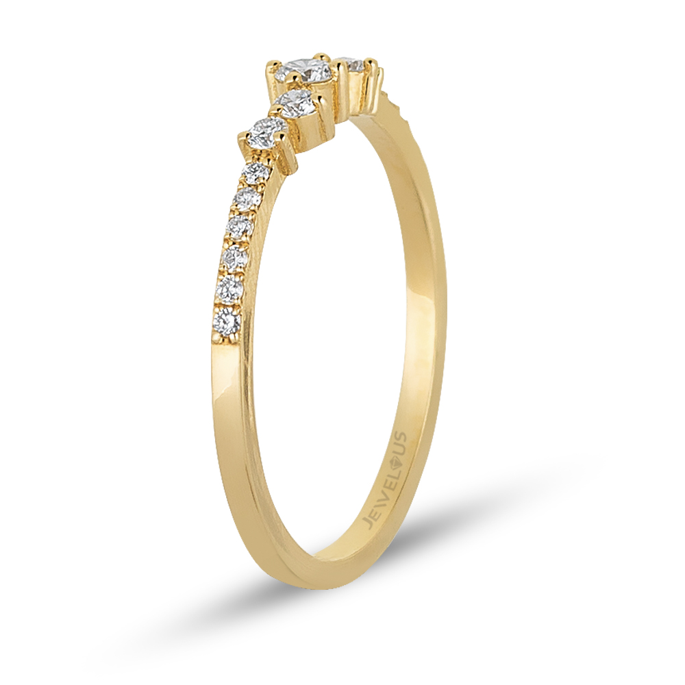 Ein absoluter Blickfang dieser feligrane – MEINSCHMUCK- Diamantring aus elegantem 585er Gelbgold. Das Schmuckstück wird von funkelnden Diamanten ( ca. 0,26 ct. ) in unterschiedlichen Größen geziert, die im Verschnitt gefasst sind und garantiert für einen Blickfang sorgen. Der funkelnde Brillantbesatz ist im Halbkranz auf der Ringschiene gefasst. Der Allroundstar lässt sich toll mit anderen Kostbarkeiten kombinieren und eignet sich als Krönung für besondere Momente. Die schmale Ringschiene gewährleistet ein angenehmes Tragegefühl. Dieser Goldring ist in den Farben Gelbgold, Weißgold und Rotgold erhältlich. Dieser wunderschöne Brillantring eignet sich wunderbar als Geschenk oder Sie machen sich selbst eine Freude!