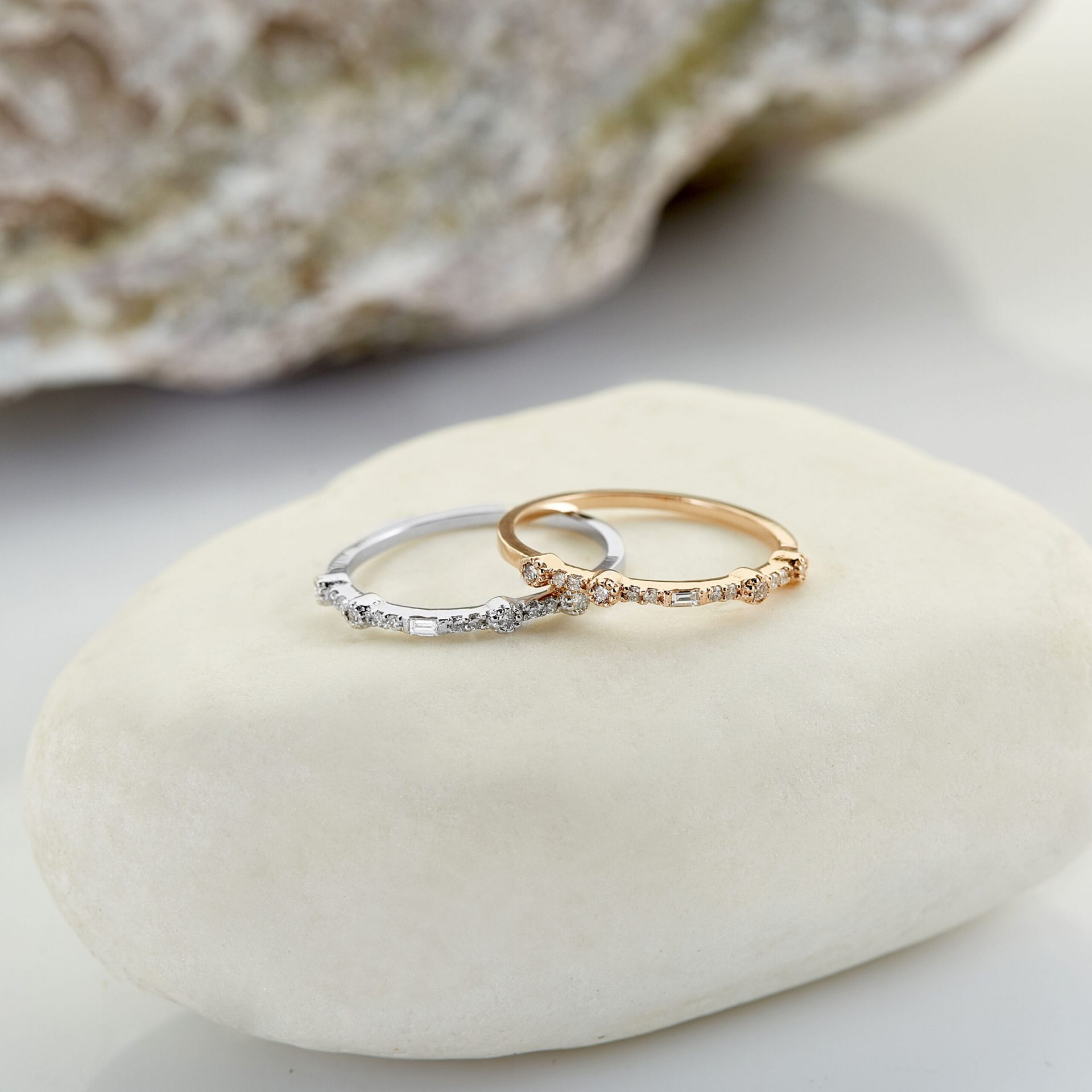 Ein feligraner Blickfang dieser – MEINSCHMUCK- Diamantring aus elegantem 585er Gold im Vintage-Stil. Das Schmuckstück wird von funkelnden Diamanten ( ca. 0,13 ct. ) im Brillant- und Baguetteschliff geziert und wird garantiert für einen Blickfang sorgen. Der Allroundstar lässt sich toll mit anderen Kostbarkeiten kombinieren und eignet sich als Krönung für besondere Momente. Die schmale Ringschiene gewährleistet ein angenehmes Tragegefühl. Dieser wunderschöne Brillantring eignet sich wunderbar als Geschenk oder Sie machen sich selbst eine Freude! Dieser Ring ist in Weißgold und Rotgold erhältlich.