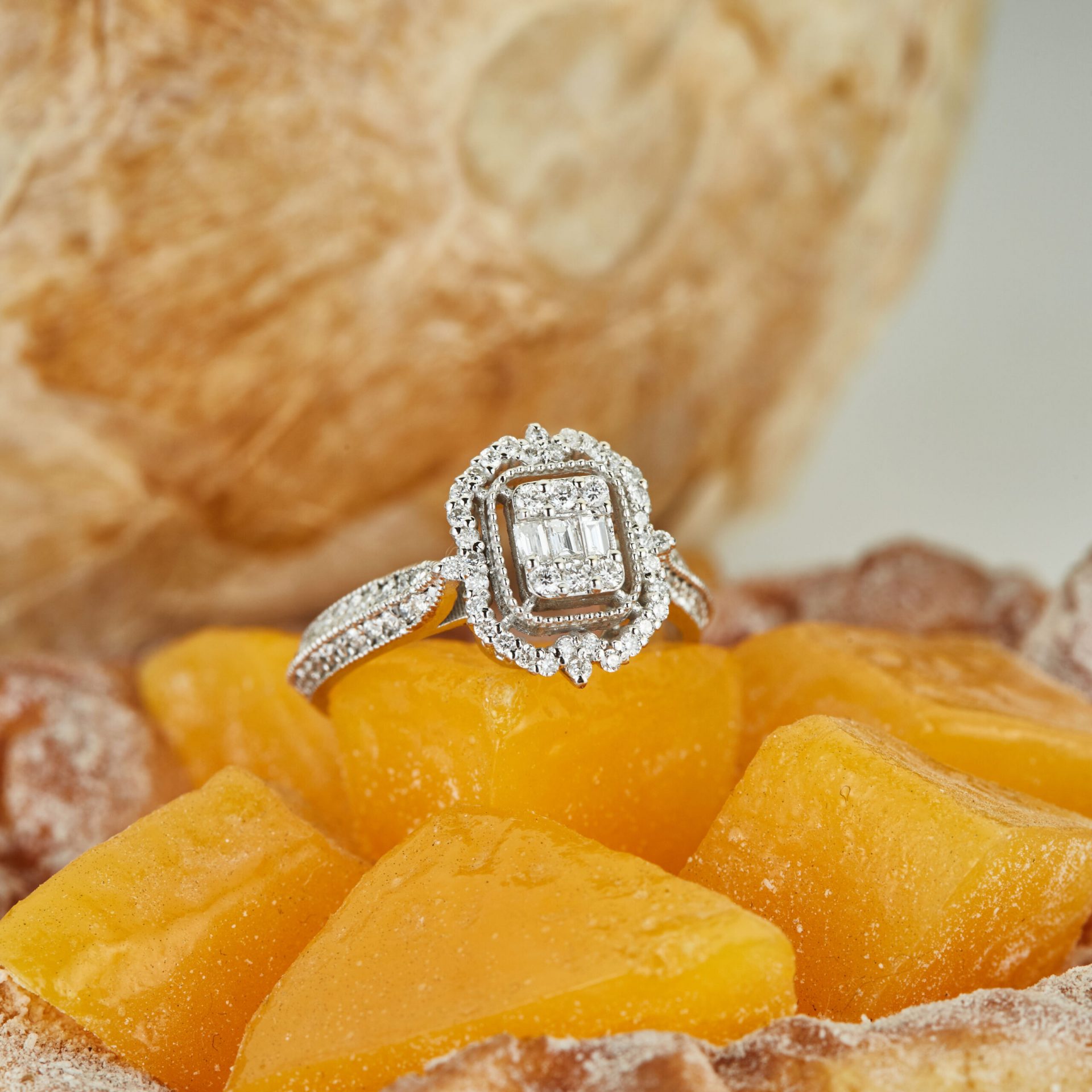 Diamantring im Vintage-Stil aus 585er Weißgold