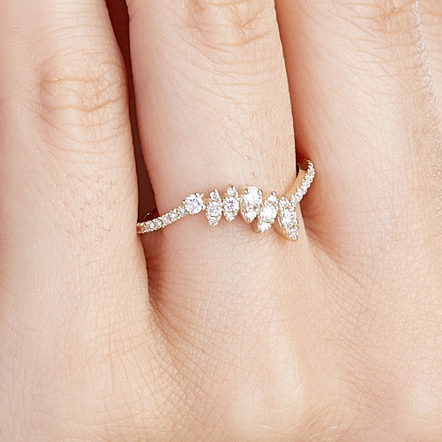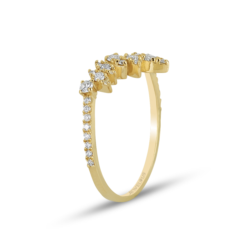 Ein einfarbiger – MEINSCHMUCK- Diamantring in schwungvollem Design aus 585er Gold und besetzt mit Diamanten. Der Goldring strahlt unaufgeregte Eleganz aus mit seiner schwungvoll gestalteten Ringschiene . Die in einen Teil der Ringschiene aus 585er Gelbgold eingearbeiteten Zierelemente, in denen die Diamanten sitzen, sind in einer Rauten- und Tropfenform gehalten. Zudem ist die gesamte vordere Hälfte des Ringes mit funkelnden Diamanten ( ca. 0,33ct. ) geziert. Er passt zu zahlreichen Stilrichtungen und zu besonderen Veranstaltungen – Sie werden begeistert sein. Die schmale Ringschiene gewährleistet ein angenehmes Tragegefühl. Dieser Goldring ist in den Farben Gelbgold, Weißgold und Rotgold erhältlich.
