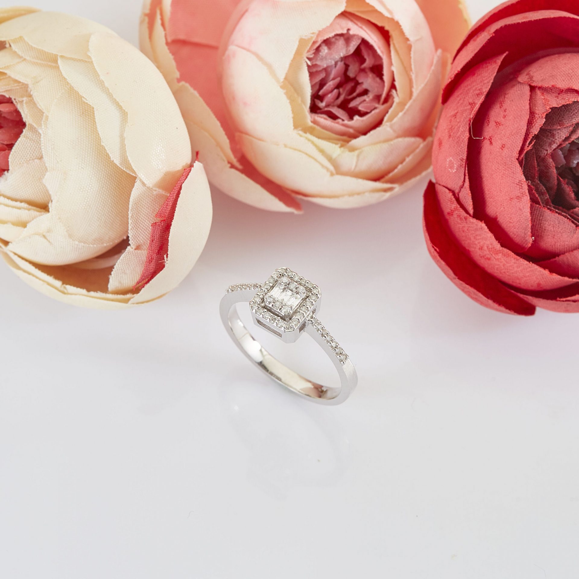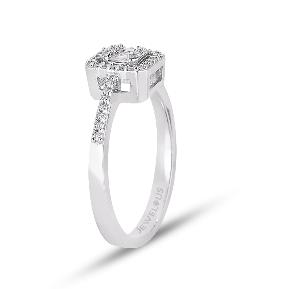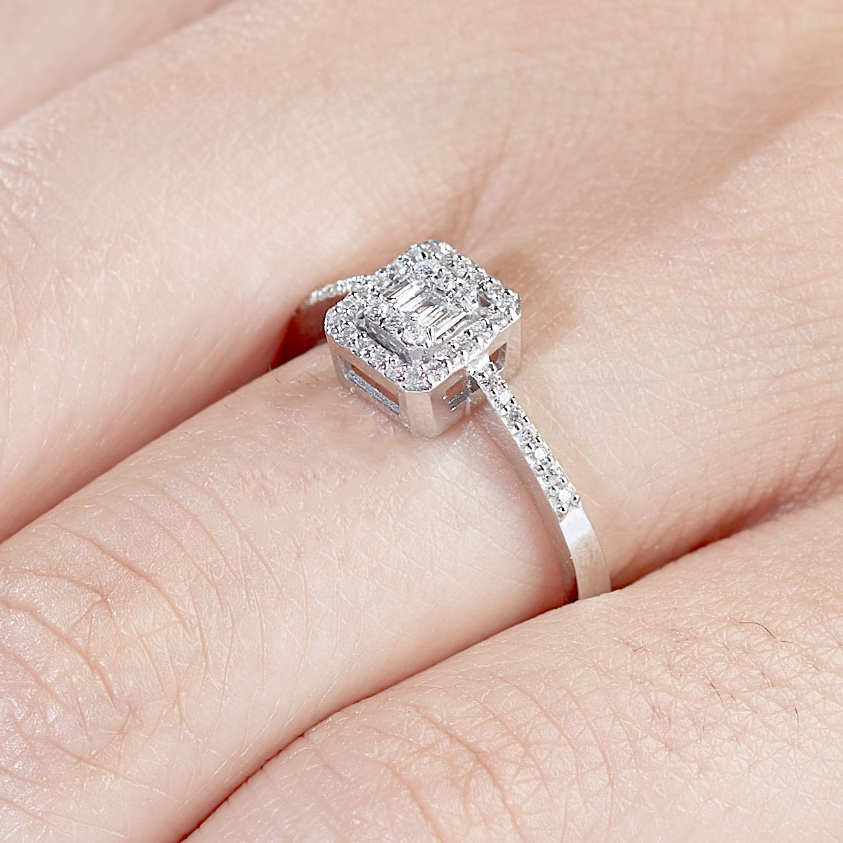 Ein funkelnder -MEINSCHMUCK- Diamantring aus 585er Gold wird von Brillanten in Baguette- und Brillantschliff gekrönt. Gehalten werden die Steine von einer quadratischen Fassung mit abgerundeten Kanten. Der Brillantbesatz setzt sich auf der Ringschiene fort. Die schmale Ringschiene gewährleistet ein angenehmes Tragegefühl. Er passt zu zahlreichen Stilrichtungen und zu besonderen Veranstaltungen – Sie werden begeistert sein! Insgesamt wird dieser Ring mit Brillanten ca. 0,21ct. geziert. Dieser wunderschöne Brillantring eignet sich auch wunderbar als Antragsring!