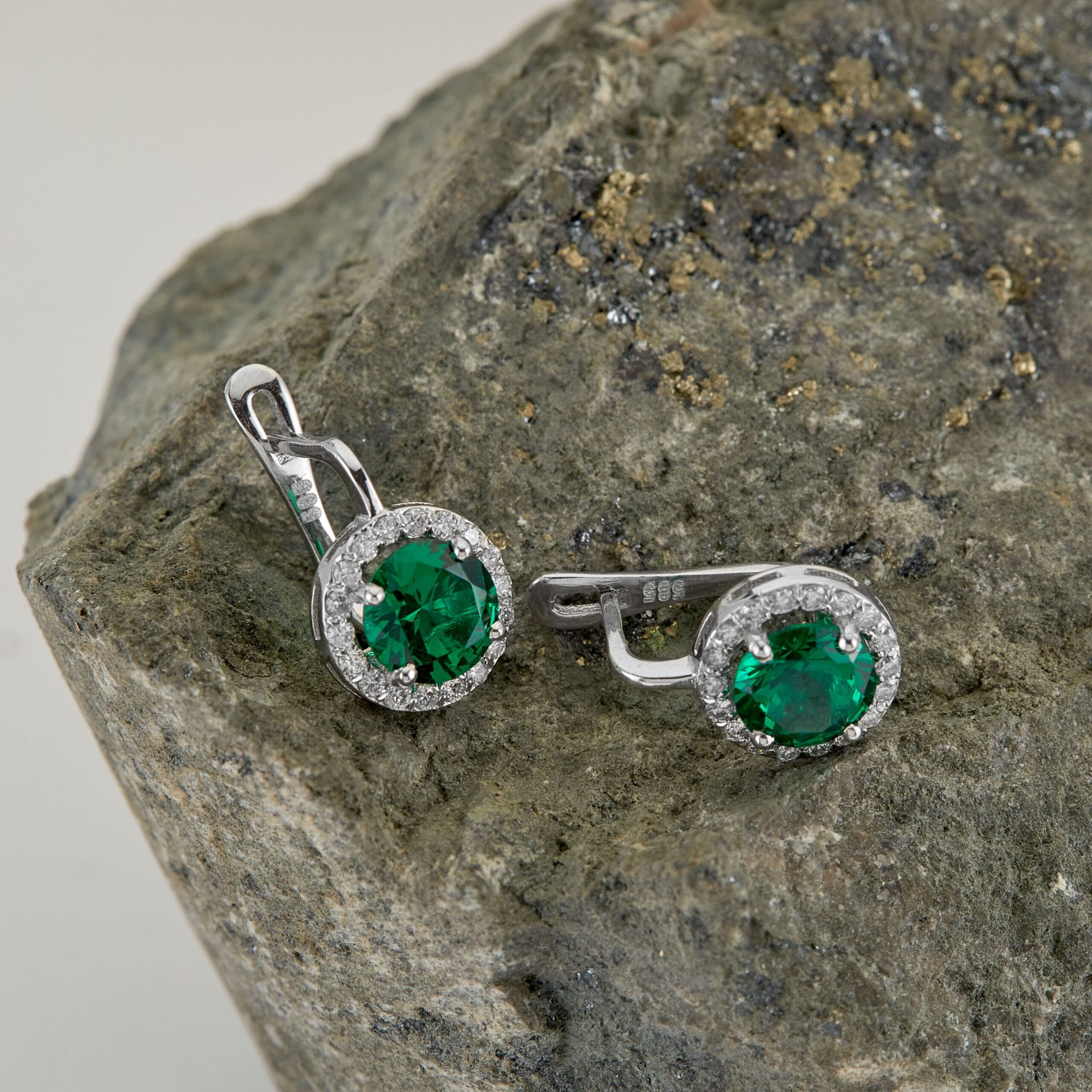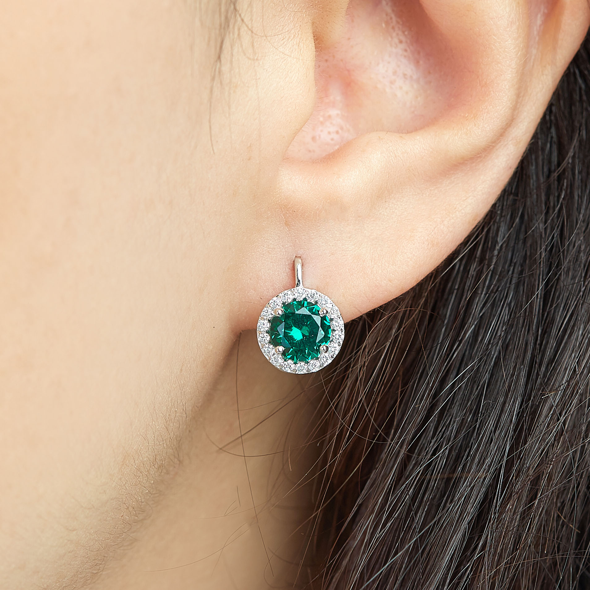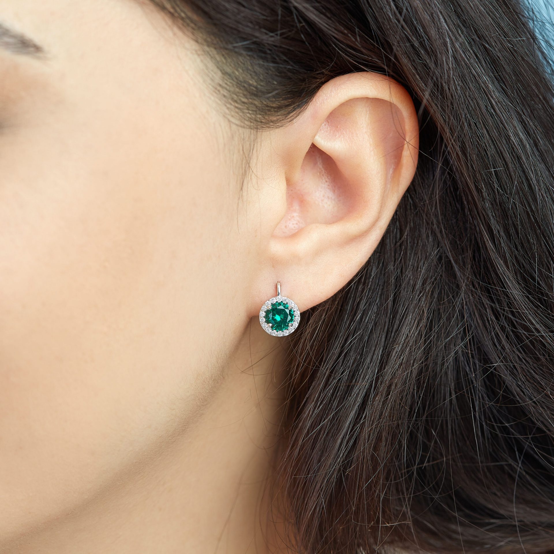 Gold Ohrhänger mit Smaragd in runder Form und Diamanten