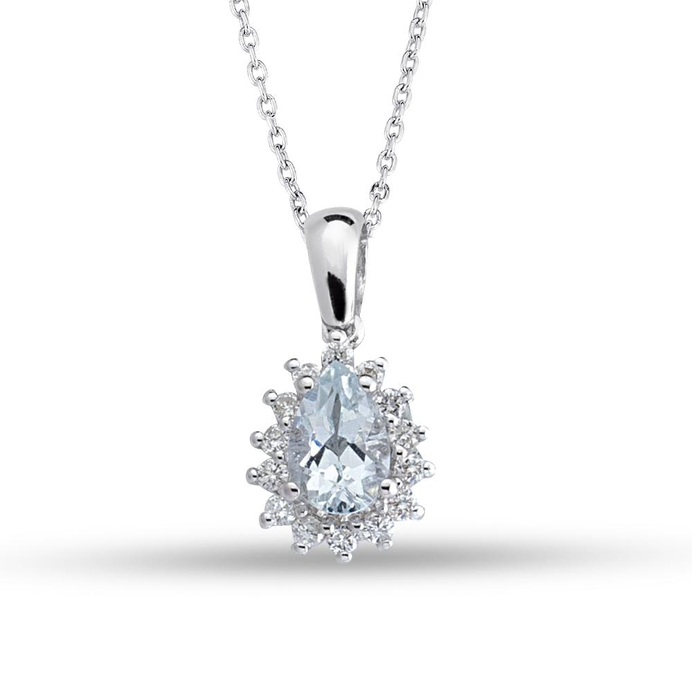 Diamantcollier mit Aquamarin – der Aquamarin (ca. 0,35ct.) in Tropfenform wird zum Eyecatcher dieser MEINSCHMUCK Kette. Der Aquamarin ist nicht der einzige Steinbesatz der filigranen Ankerkette, sonderen ist von Brillanten (ca. 0,13ct.) umgeben! Mit dieser bezaubernden MEINSCHMUCK Kette und vor allem ihrem Anhänger aus rhodiniertem 585er Weißgold machen Sie alles richtig, ob zum Verschenken oder um sich selbst eine Freude zu bereiten.