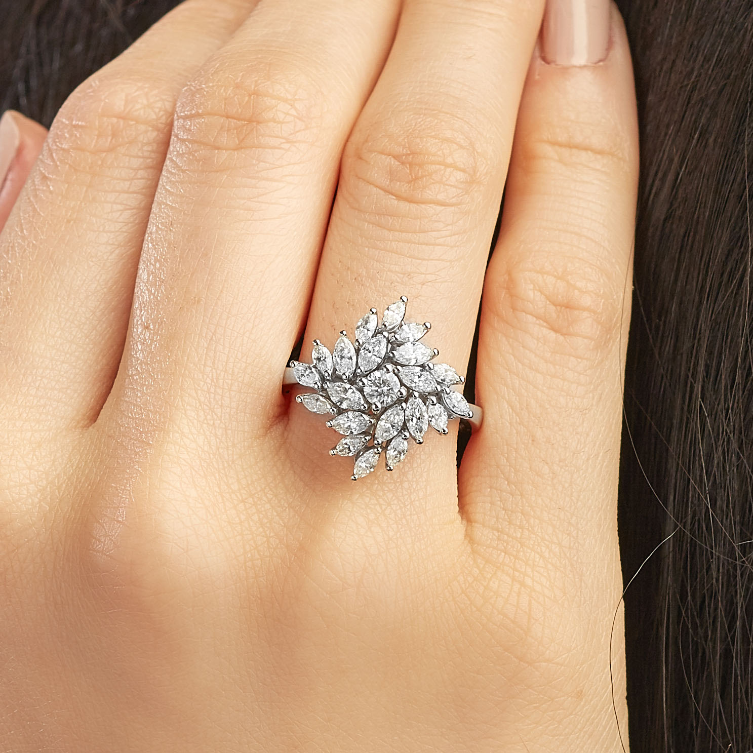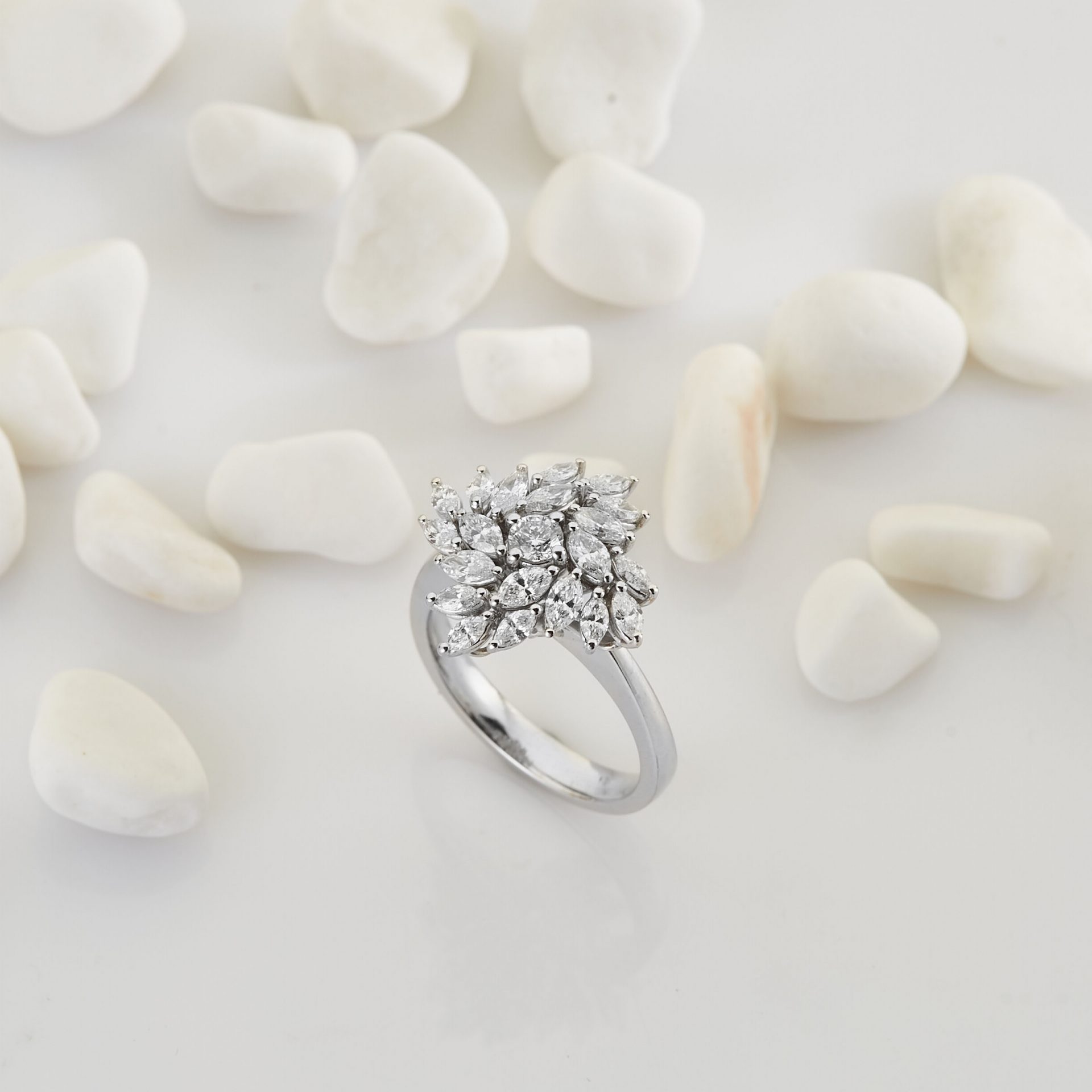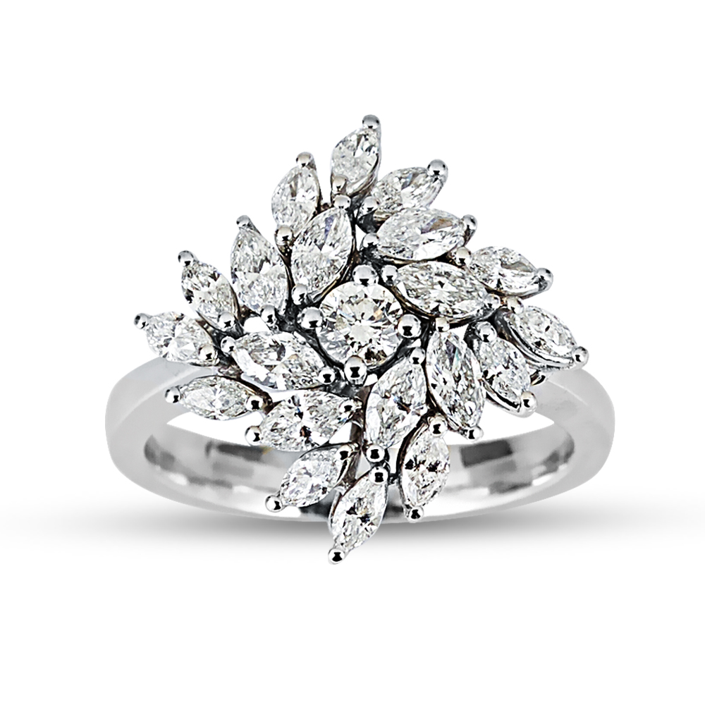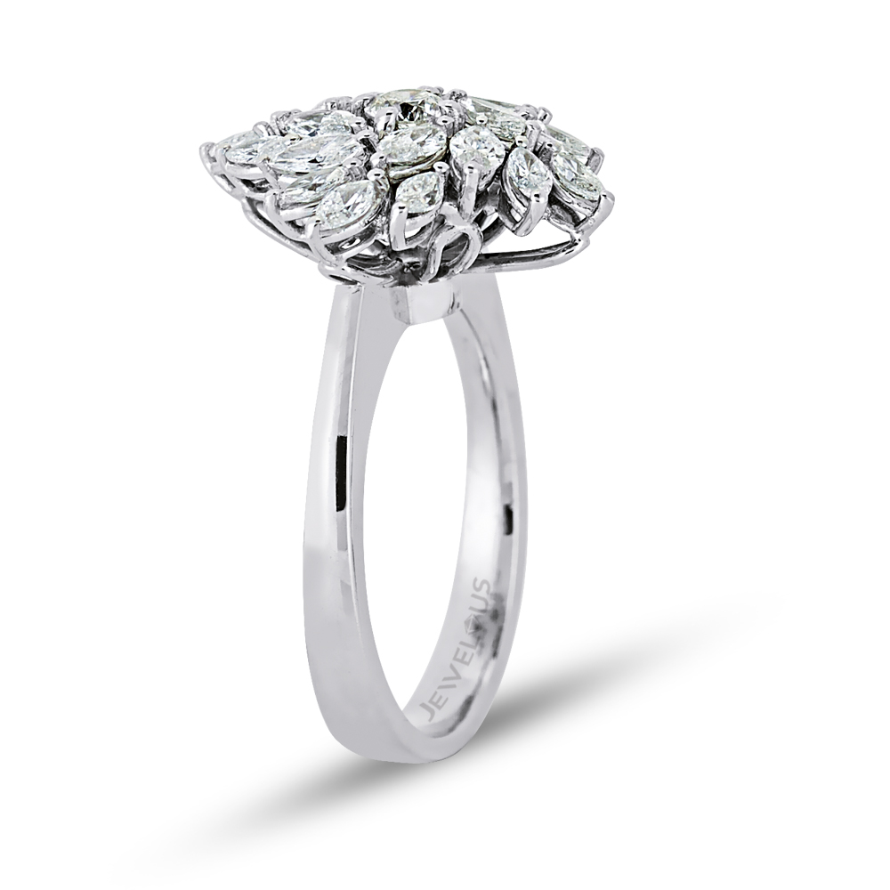 Florales Muster – dieser MEINSCHMUCK Goldring aus 585er Weißgold geziert mit Zirkoniasteinen in Blumenform. Der funkelnder Eyecatcher ist der Blumenform-Ringkopf, er wird von Zirkoniasteinen im Tropfen- und Brillantschliff geziert. Dieser raffinierte Kontrast wird bewundernde Blicke magisch anziehen. Die hochwertigen Materialien und die präzise Verarbeitung sorgen dafür, dass Sie lange Freude an diesem Ring haben werden. Die schmale Ringschiene sorgt für ein angenehmes Tragegefühl. Dieser wunderschöne Ring eignet sich auch wunderbar als Geschenk!