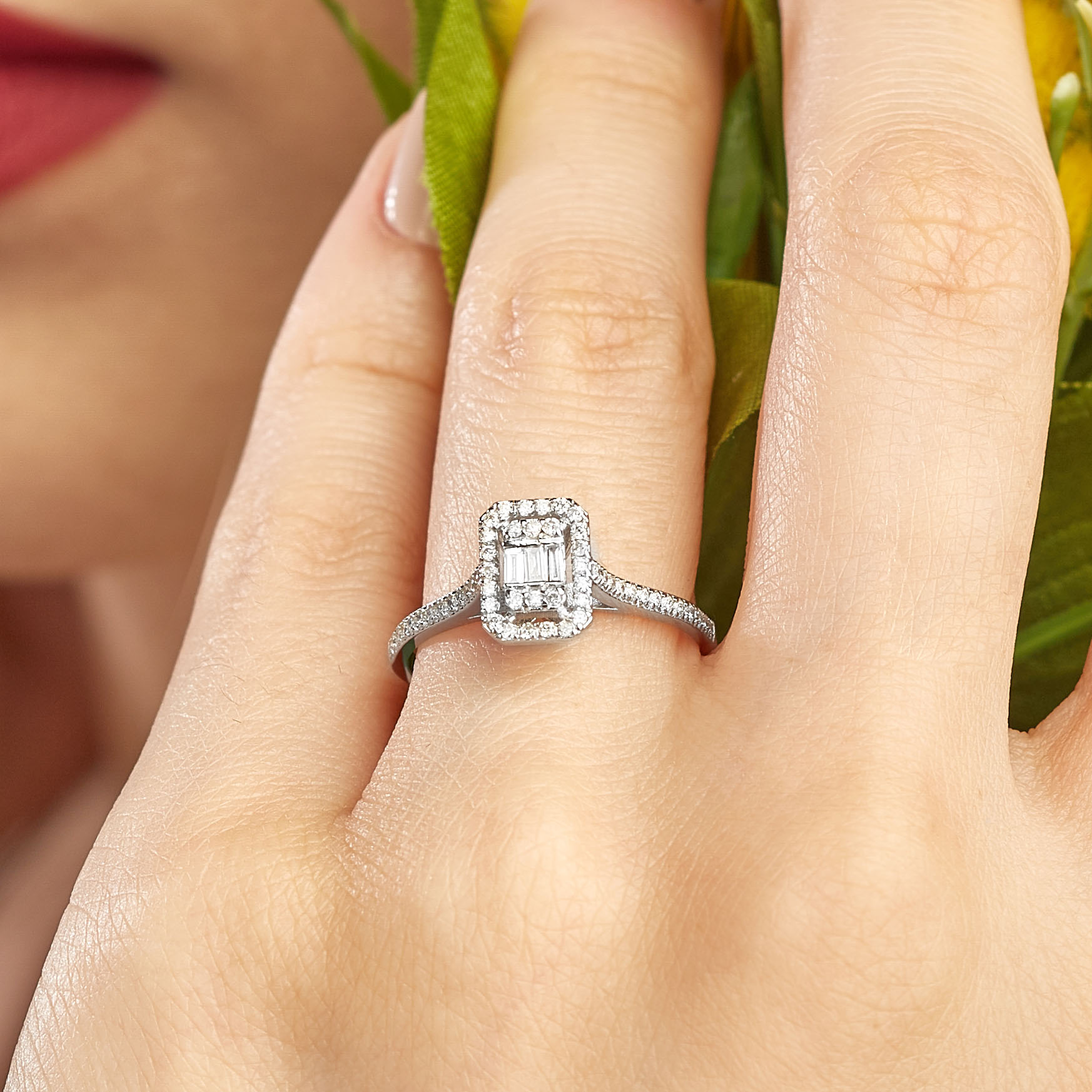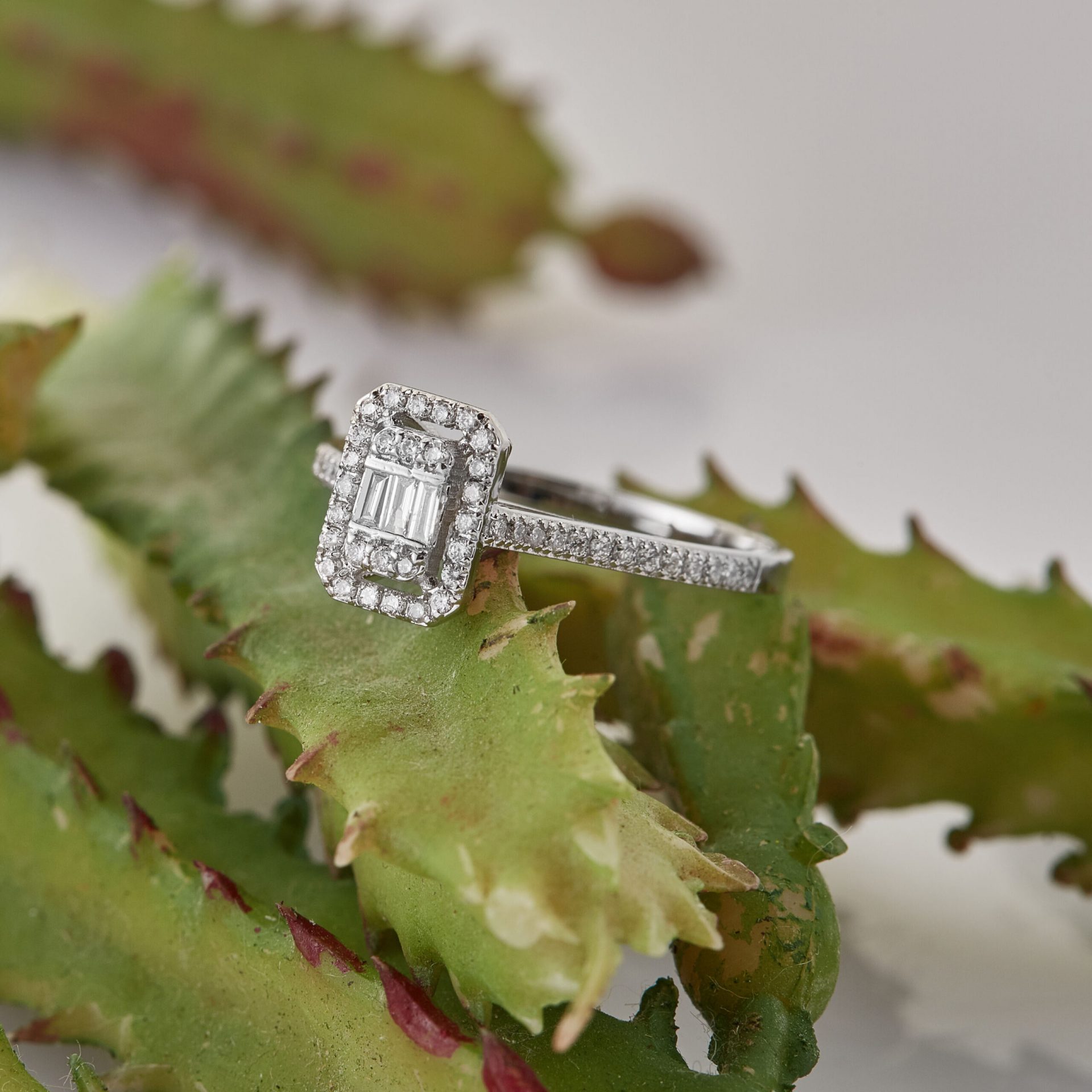 Ein funkelnder -MEINSCHMUCK- Goldring wird mit Zirkoniasteinen in Baguette- und Brillantschliff gekrönt. Gehalten werden die Zirkoniasteine von einer quadratischen Fassung mit abgerundeten Kanten. Der Zirkoniabesatz setzt sich auf der 585er Weißgold Ringschiene fort. Die schmale Ringschiene gewährleistet ein angenehmes Tragegefühl – Sie werden begeistert sein! Dieser wunderschöne Ring eignet sich auch wunderbar als Antragsring!