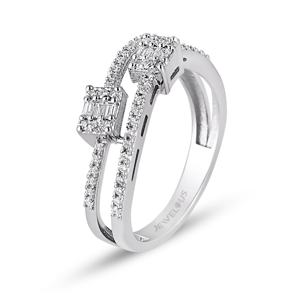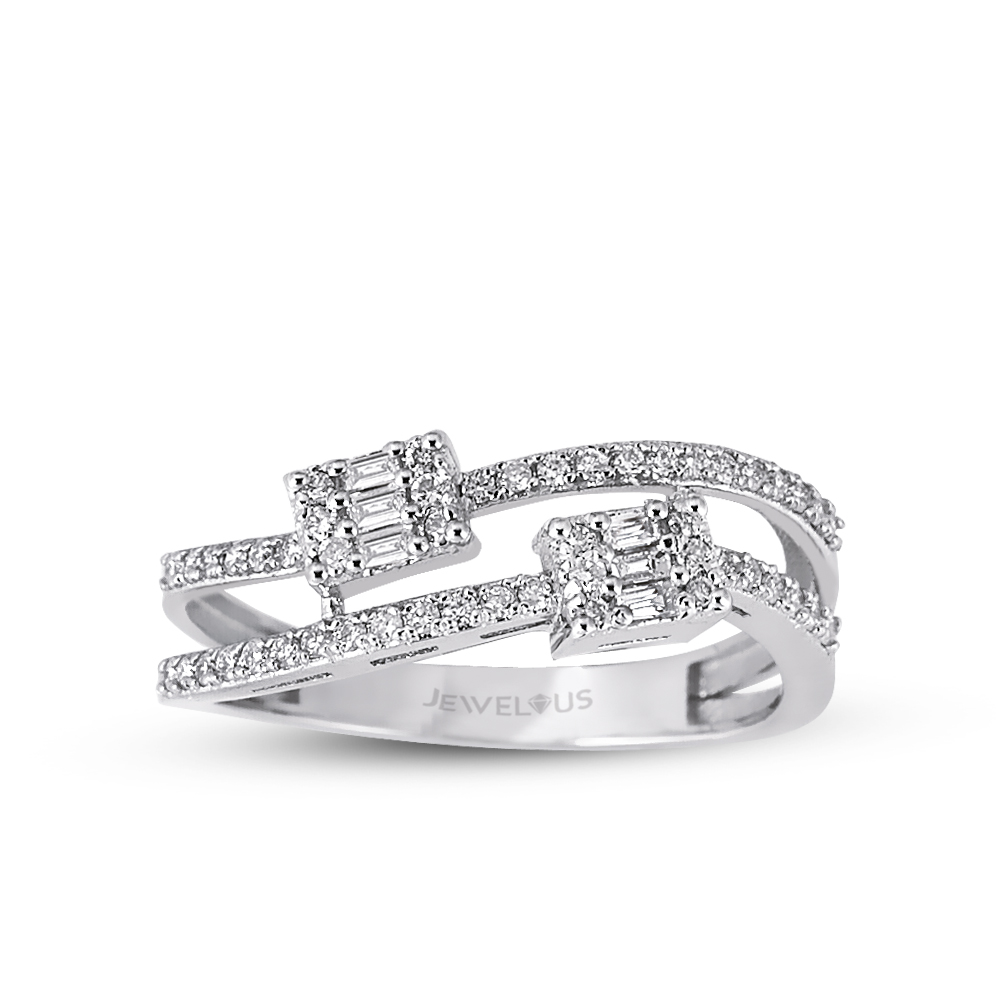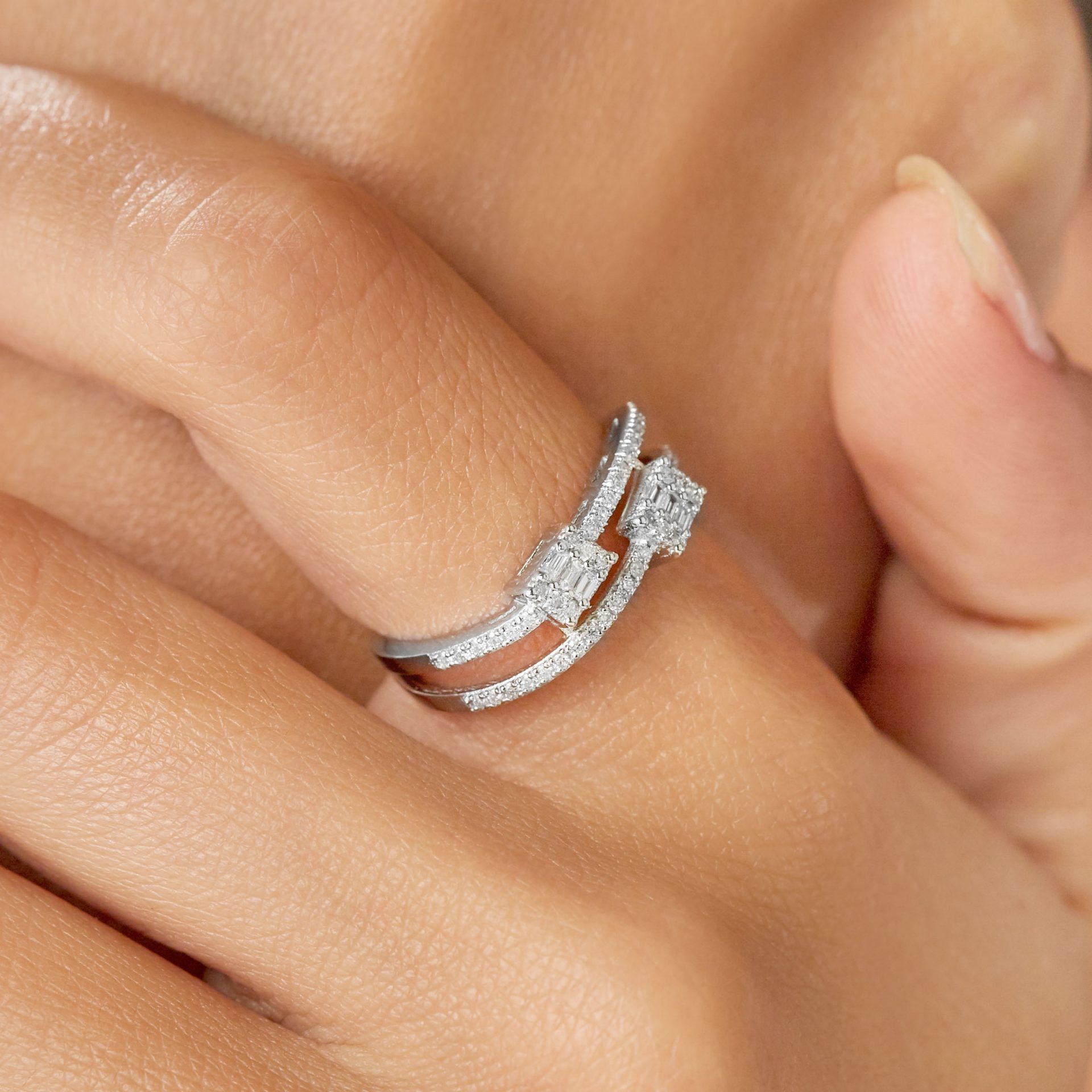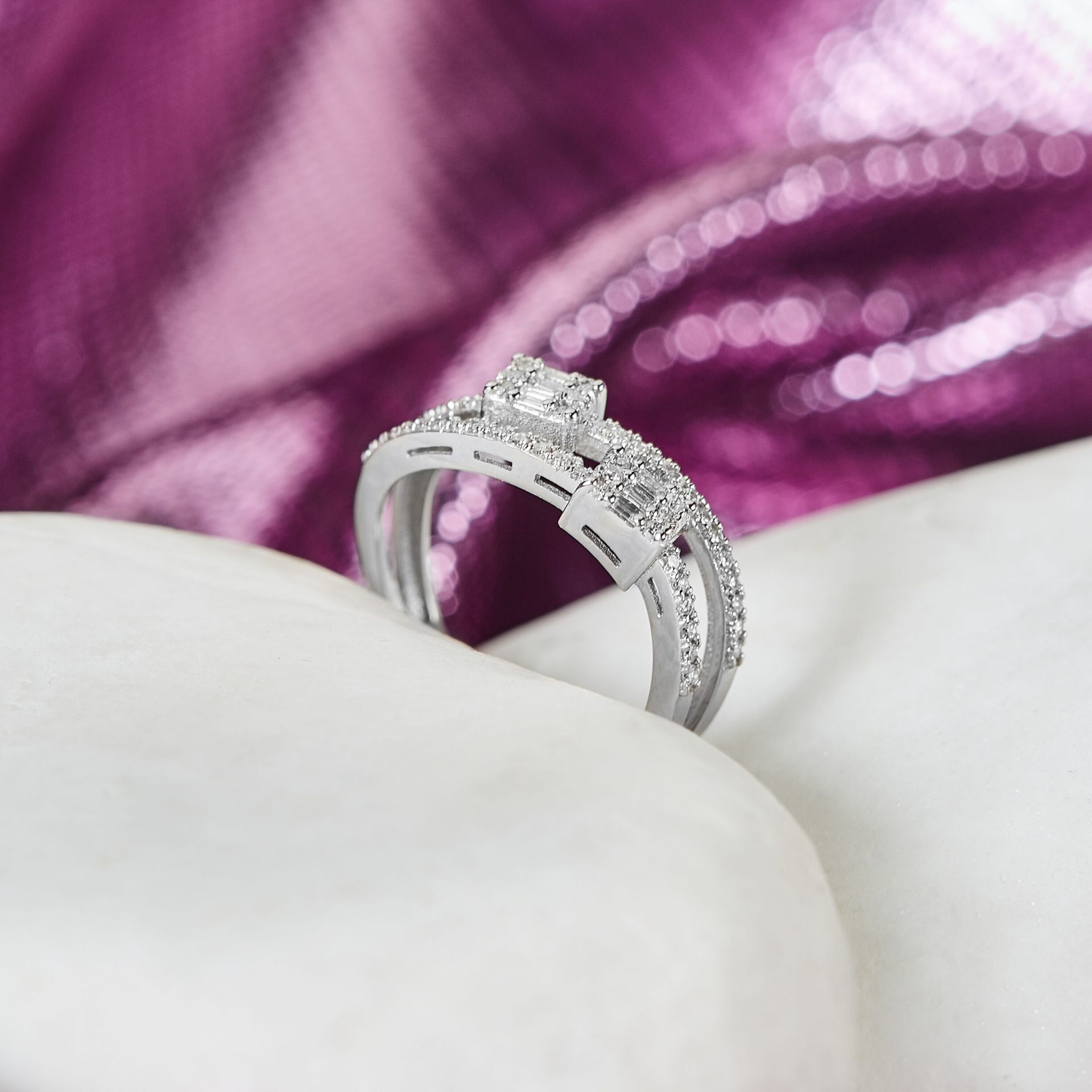 Ein MEINSCHMUCK Ring mit Zirkoniasteinen und schwungvollem Design! Aus 585er weißgoldenem Glanz und zweireihiger dezent geschwungener Ringschiene, wird dieser Ring zum Eyecatcher. Die Verschnittfassungen rückt die Zirkoniasteinen im Brillant- und Baguetteschliff perfekt in Szene. Als Highlight sind auf der Ringschiene zwei quadratische Fassungen mit Zirkoniasteinen verziert. Diese Kombination aus der geschwungenen zweireihigen Ringschiene aus 585er Gold und dem Steinbesatz, macht aus dem filigranen Ring ein optisch abwechslungsreiches Schmuckstück, das zu zahlreichen Looks passen wird. Wir legen bei unserem Schmuck nur Wert auf eine exzellente Qualität.