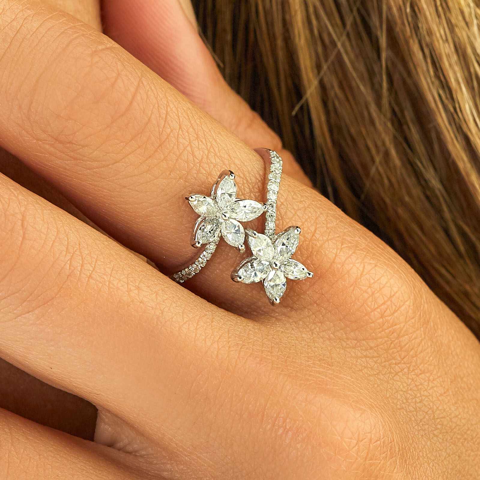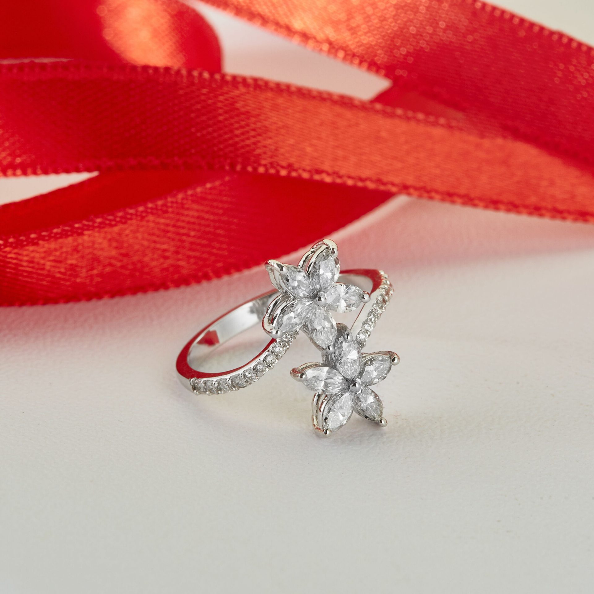 Florale Designkunst – raffiniert designter MEINSCHMUCK Goldring mit Zirkoniasteinen. Dieser Ring ist ein bezaubernder Eyecatcher. Er besteht aus 585er Gold und besitzt ein ansprechendes Blumendesign. Die Ringschiene teilt sich nach oben und ist jeweils an den Enden mit Blumen verziert. Der Goldring ist mit brillantgeschliffenen Zirkoniasteinen besetzt. Die schmale Ringschiene aus 585er Gold gewährleistet ein angenehmes Tragegefühl. Er passt zu zahlreichen Stilrichtungen und zu besonderen Veranstaltungen – Sie werden begeistert sein! Dieser wunderschöne Ring eignet sich wunderbar als Geschenk!