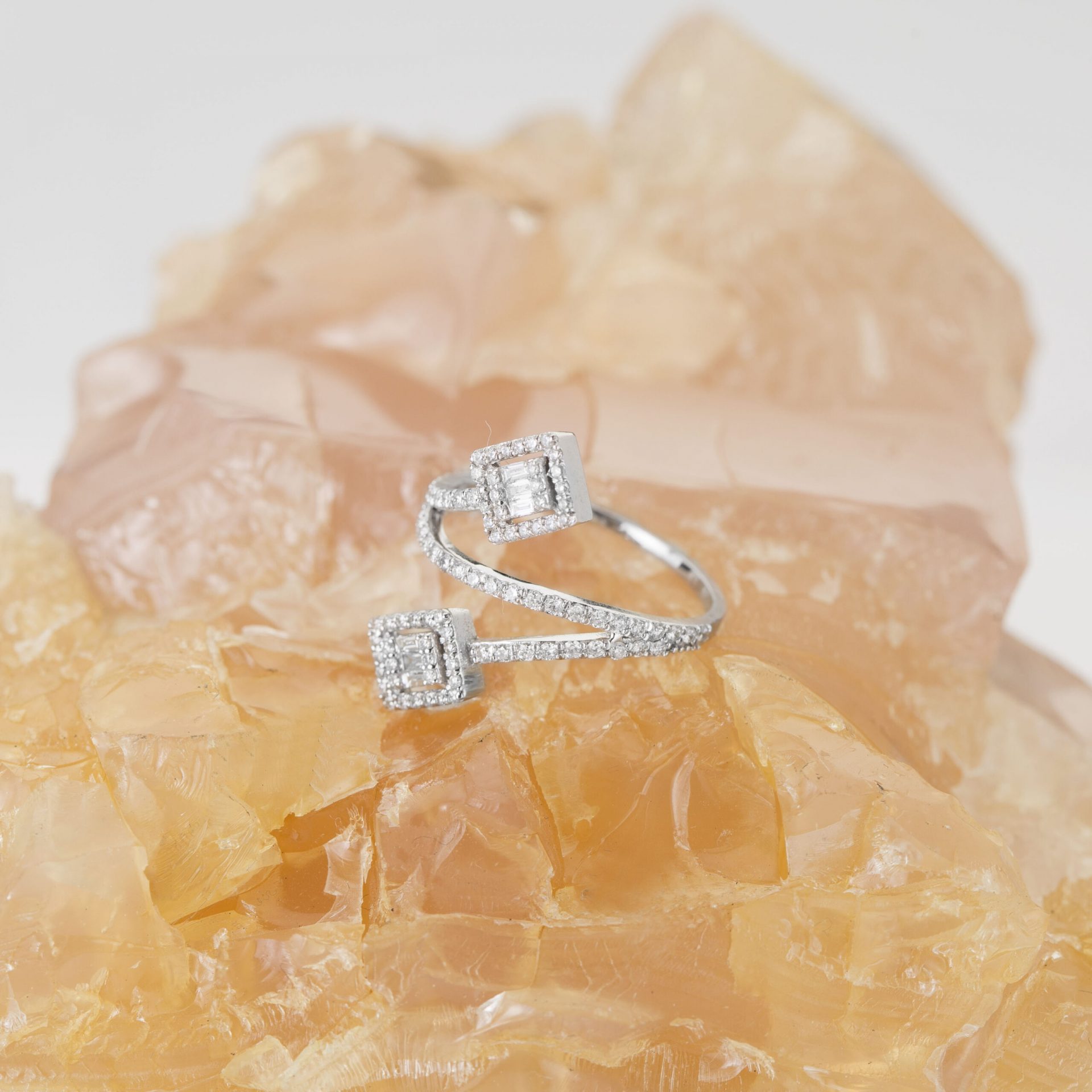 Ein absoluter Blickfang dieser feligrane -MEINSCHMUCK- Ring aus elegantem 585er Weißgold. Das Schmuckstück wird von funkelnden Zirkoniasteinen in Brillant- und Baguetteschliff geziert. Der Ring hat ein außergewöhnliches Design, eine Art Zweig geht von der Ringschiene ab, welcher in einer quadratischen Form endet und garantiert für einen Blickfang sorgt. Der funkelnde Steinbesatz ist im Halbkranz auf der Ringschiene gefasst. Der Allroundstar lässt sich toll mit anderen Kostbarkeiten kombinieren und eignet sich als Krönung für besondere Momente. Die schmale Ringschiene gewährleistet ein angenehmes Tragegefühl. Dieser wunderschöne Ring eignet sich wunderbar als Geschenk oder Sie machen sich selbst eine Freude!