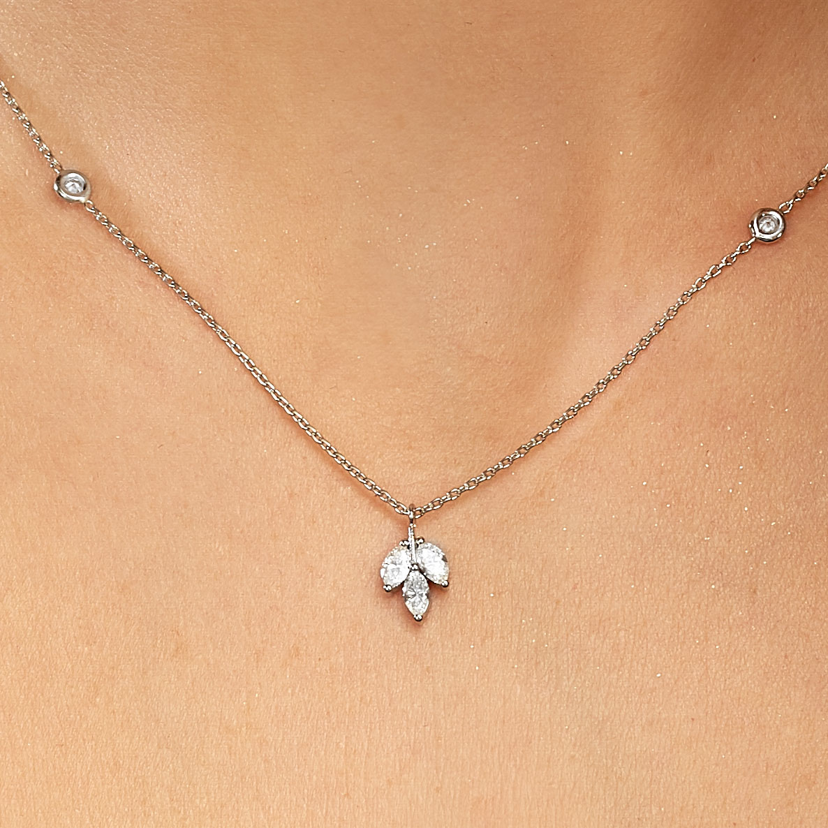 Zum Verlieben schön – feligrane MEINSCHMUCK Halskette aus 585er Weißgold mit drei Brillanten (ca. 0,35ct.) im Marquiseschliff. Diese Kette aus 585er Gold ist ein absolut bezaubernder Eyecatcher! Die feingliedrige Ankerkette garantiert einen angenehmen Tragekomfort und kommt durch ihre zwei kreisrunden Brillanten (ca. 0,15ct.) richtig zum glänzen. Diese Kette lässt sich vielseitig kombinieren, egal ob zu besonderen Anlässen oder ganz leger im Alltag! Machen Sie sich selbst eine Freude, mit dieser wunderschönen Kette!