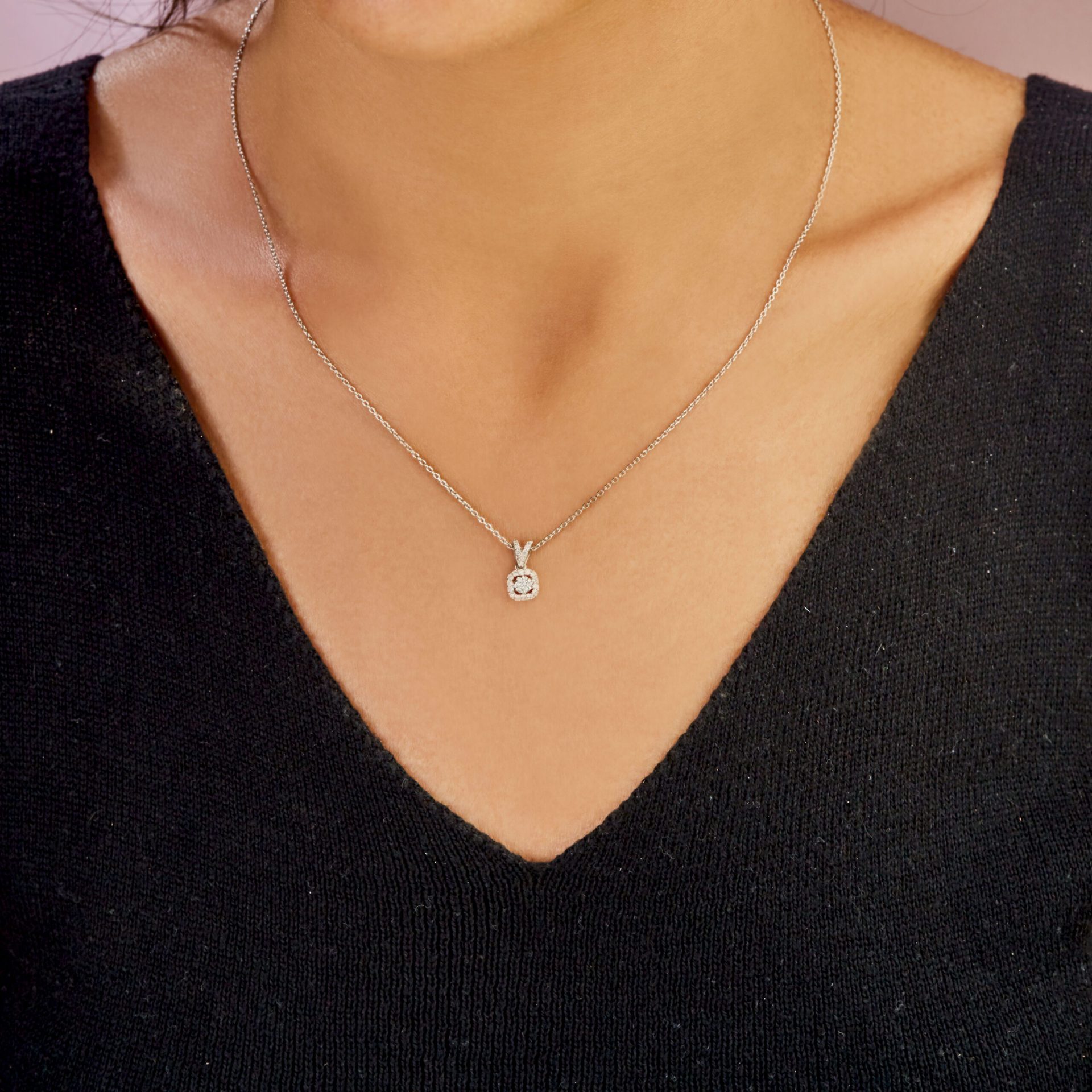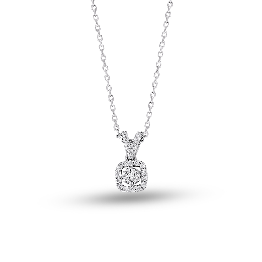 Funkelnde Eyecatcher – diese MEINSCHMUCK Kette mit Anhänger welcher mit weißen Brillanten im Brillantschliff geziert ist. Der quadratische Anhänger ist auf seiner Vorderseite vollkommen mit strahlenden Brillanten (gesamt ca. 0,18ct.) besetzt, die unablässig funkeln. Eine tolle Kombination aus 585er Weißgold und exclusiven Brillantbesatz. Diese Kette lässt sich vielseitig kombinieren, egal ob zu besonderen Anlässen oder ganz leger im Alltag! Machen Sie sich selbst eine Freude, mit dieser wunderschönen Kette! Kleiner Tipp – in unserem Shop erhalten Sie auch die passenden Ohrringe!