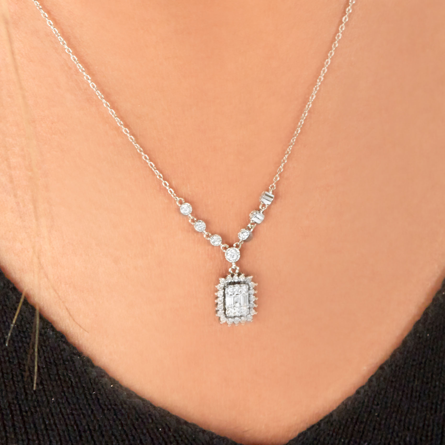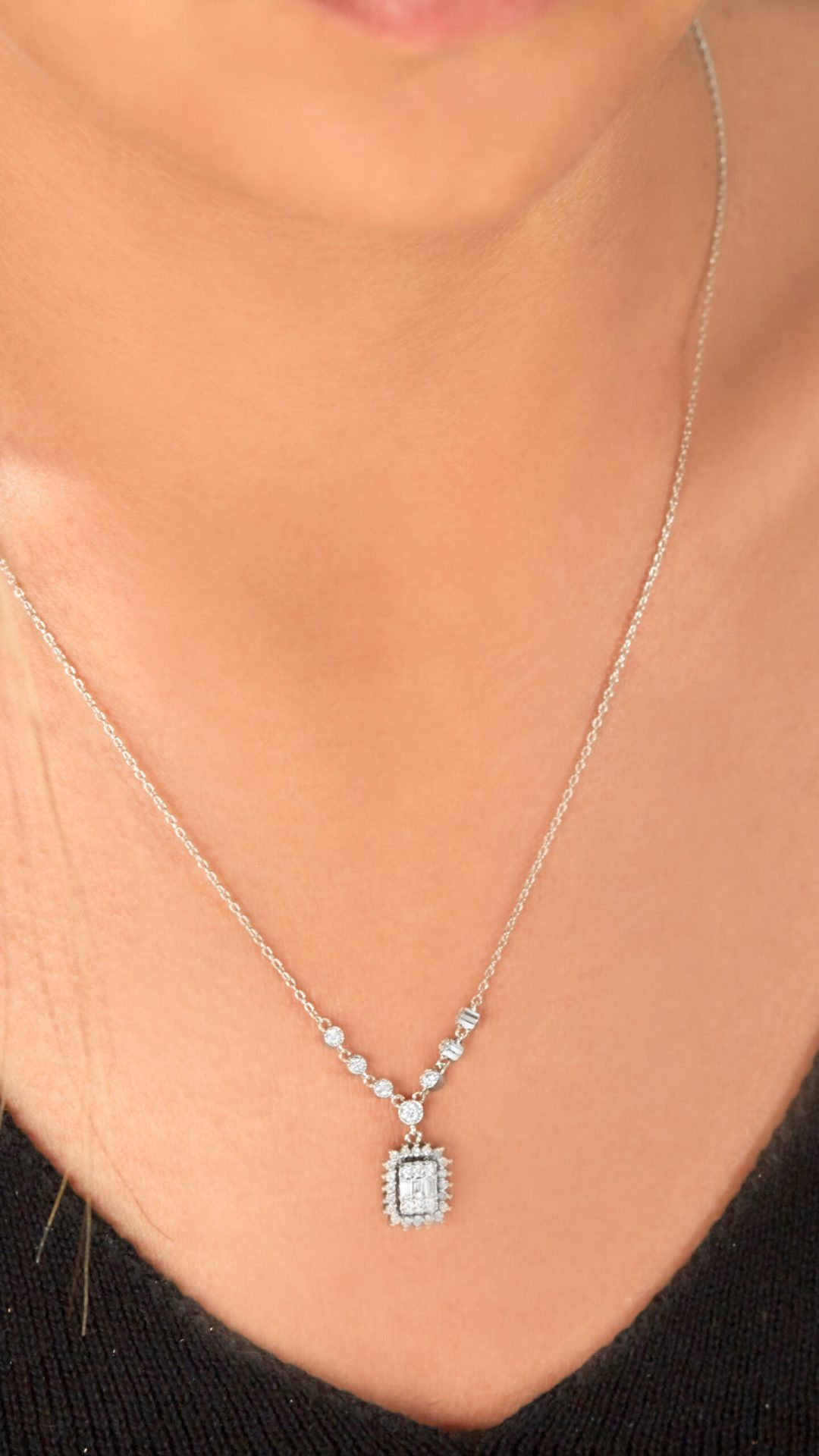 Hochkarätige Geschenkidee – Brillant besetzter Anhänger mit exklusivem Funkeln und filigraner Ankerkette! Mit dieser funkelnden MEINSCHMUCK Kette und vor allem ihrem quadratischem Anhänger aus rhodiniertem 585er Weißgold machen Sie alles richtig, ob zum Verschenken oder um sich selbst eine Freude zu bereiten. Der quadratische Anhänger besticht ganz und gar durch die reinweißen Diamanten (ca. 0,44ct.) im Baguette- und Brillantschliff. Das rhodinierte 585er Weißgold, welches die Basis des Anhängers bildet und aus dem auch die Kette gefertigt ist, harmoniert perfekt mit dem Funkeln der Brillanten.