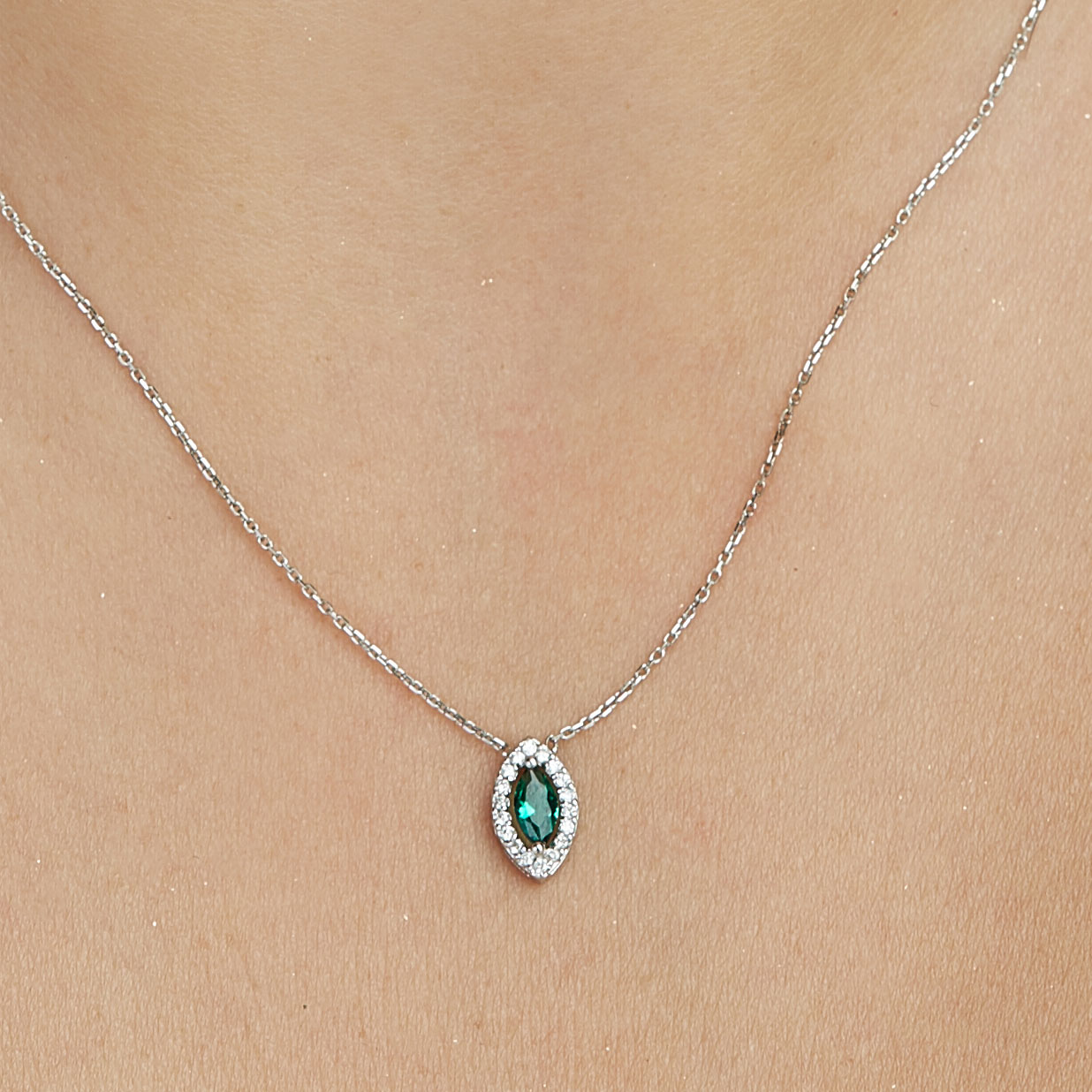 Kette mit Smaragd in Marquiseschliff und Brillanten aus 585er Weißgold MARQUILIA
