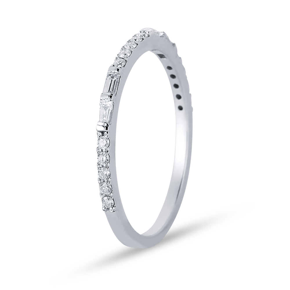 Atemberaubender Glanz weist dieser -MEINSCHMUCK- Memory Ring / Diamant Ring aus 585er Gold im Halbkranz auf. Auf der Ringschiene dieses Rings aus 585er Weißgold versammeln sich im Halbkranz Diamanten im Brillant- und Baguetteschliff mit ca. 0,20 ct. (gesamt). Die Diamanten verfügen über einen magischen Glanz, dem sich niemand entziehen kann. Insbesondere bei Lichteinfall entstehen atemberaubende Reflexionen. Das Gold ist auf Hochglanz poliert, was seinen Schimmer noch mehr zum Vorschein bringt. Er ist ein Symbol unvergesslicher Momente, denn jeder Diamant kann für ein besonderes Ereignis stehen. Dieser wunderschöne Ring eignet sich wunderbar als Antragsring oder als Vorsteckring! Dieser Goldring ist in den Farben Gelbgold, Weißgold und Rotgold erhältlich.