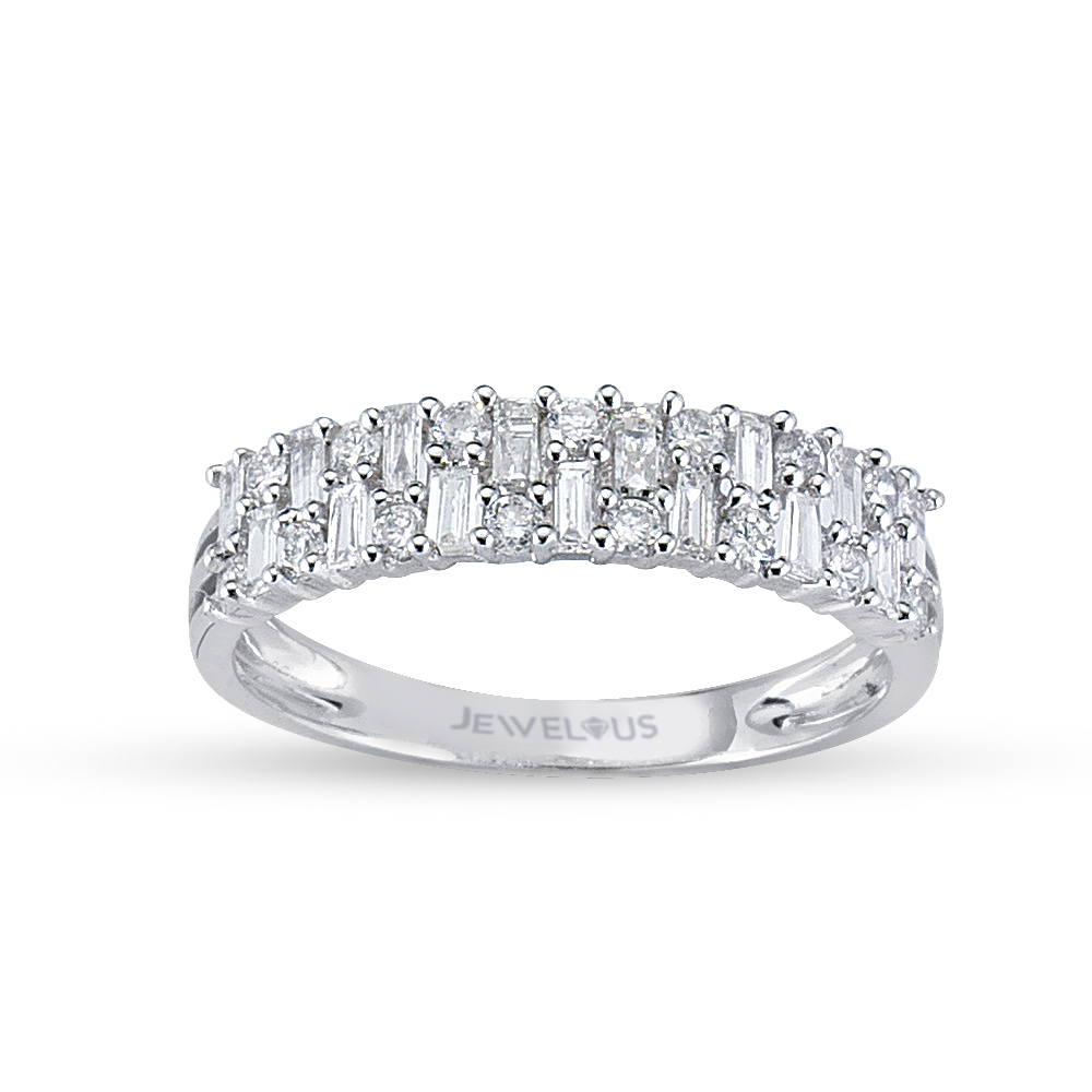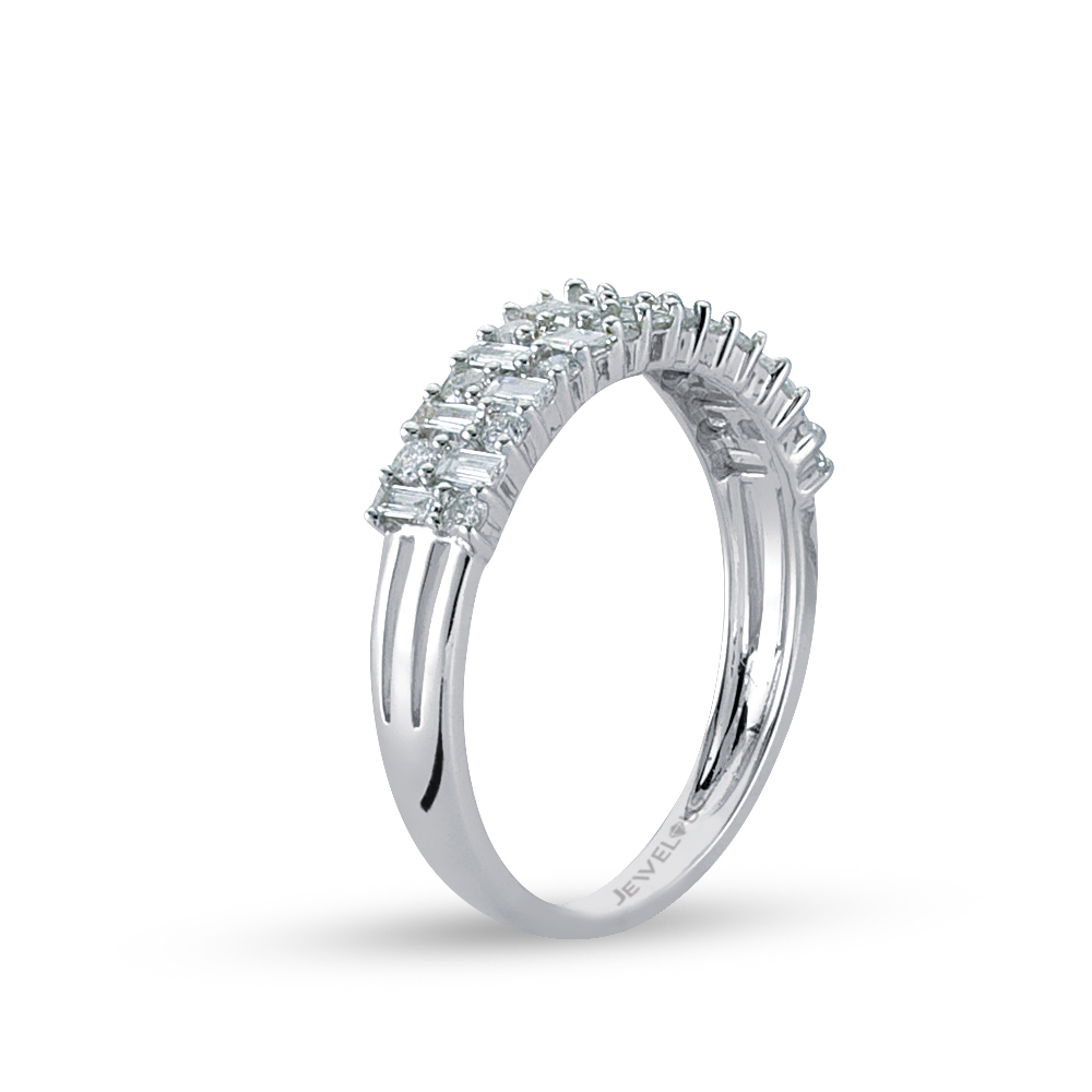 Einen besonderen Glanz weist dieser Memory Ring aus 585er Gold mit Halbkranz auf. Auf der Hälfte der Ringschiene dieses Rings aus 585er Weißgold versammeln sich im Wechsel Zirkonasteine im Brillant- und Baguetteschliff. Die Steine verfügen über einen magischen Glanz, dem sich niemand entziehen kann. Insbesondere bei Lichteinfall entstehen atemberaubende Reflexionen. Das Gold ist auf Hochglanz poliert, was seinen Schimmer noch mehr zum Vorschein bringt. Er ist ein Symbol unvergesslicher Momente, denn jeder Stein kann für ein besonderes Ereignis stehen. Dieser wunderschöne Ring eignet sich wunderbar als Vorsteckring!