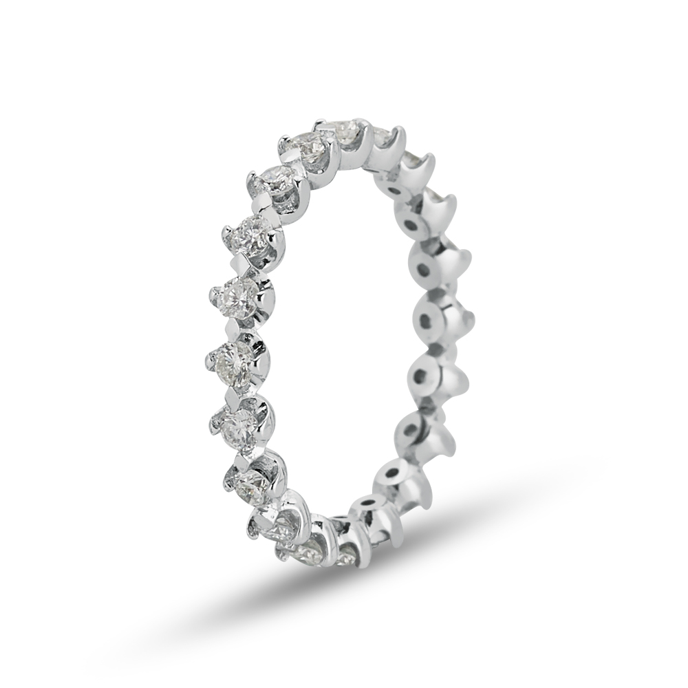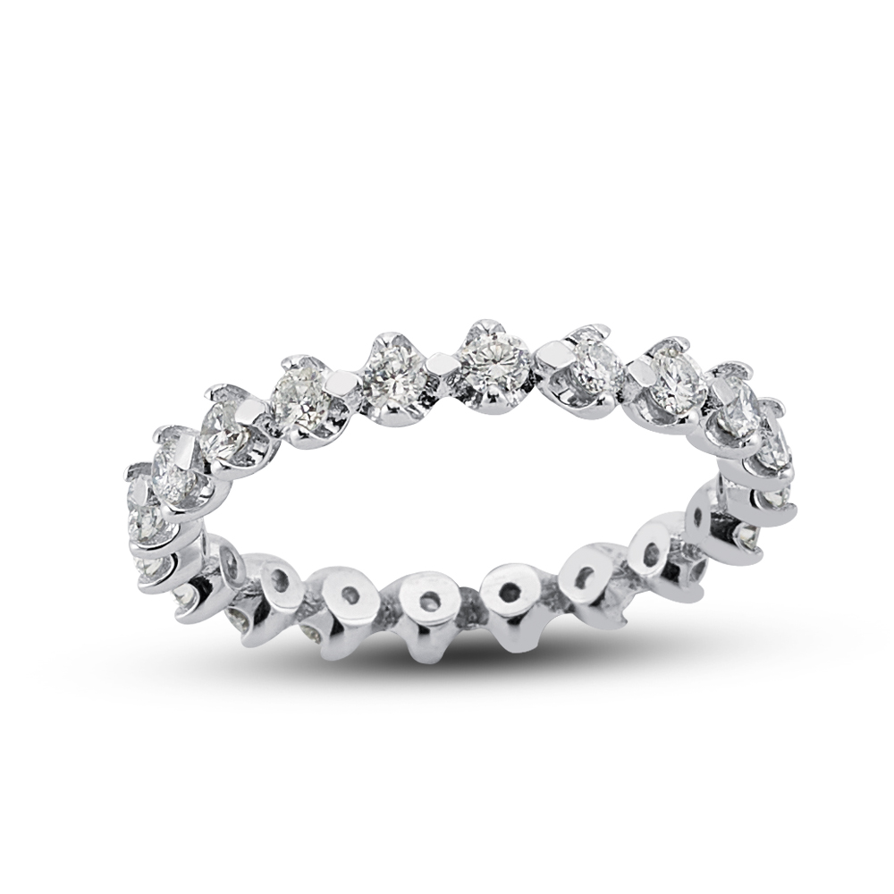 Atemberaubender Glanz weist dieser Memory Ring / Eternityring aus Gold auf. Auf der Ringschiene dieses Rings aus 585er Weißgold versammeln sich rundum Zirkoniasteine. Die Steine verfügen über einen magischen Glanz, dem sich niemand entziehen kann. Das Gold ist auf Hochglanz poliert, was seinen Schimmer noch mehr zum Vorschein bringt. Ein derartiger Ring, dessen Ringschiene rundum mit Diamanten oder anderen Ziersteinen besetzt ist, wird auch als Eternityring (dt. Ewigkeitsring) oder Memoirering (dt. Erinnerungsring) bezeichnet. Er ist ein Symbol unvergesslicher Momente, denn jeder Zierstein kann für ein besonderes Ereignis stehen. Dieser wunderschöne Ring eignet sich wunderbar als Antragsring oder als Vorsteckring!