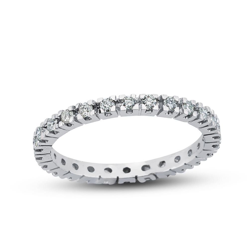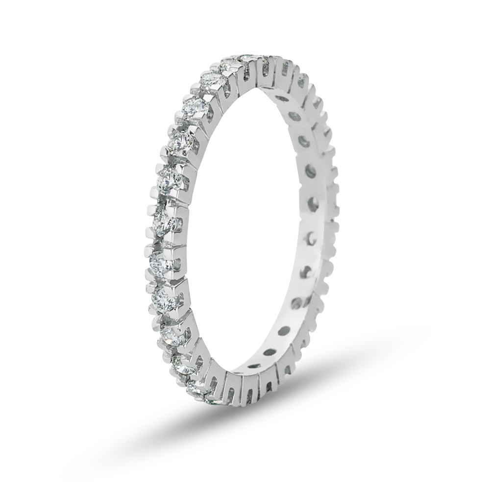 Atemberaubender Glanz weist dieser Memory Ring / Eternityring aus Gold auf. Auf der Ringschiene dieses Rings aus 585er Weißgold versammeln sich rundum Zirkoniasteine. Die Steine verfügen über einen magischen Glanz, dem sich niemand entziehen kann. Das Gold ist auf Hochglanz poliert, was seinen Schimmer noch mehr zum Vorschein bringt. Ein derartiger Ring, dessen Ringschiene rundum mit Diamanten oder anderen Ziersteinen besetzt ist, wird auch als Eternityring (dt. Ewigkeitsring) oder Memoirering (dt. Erinnerungsring) bezeichnet. Er ist ein Symbol unvergesslicher Momente, denn jeder Zierstein kann für ein besonderes Ereignis stehen. Dieser wunderschöne Ring eignet sich wunderbar als Antragsring oder als Vorsteckring!