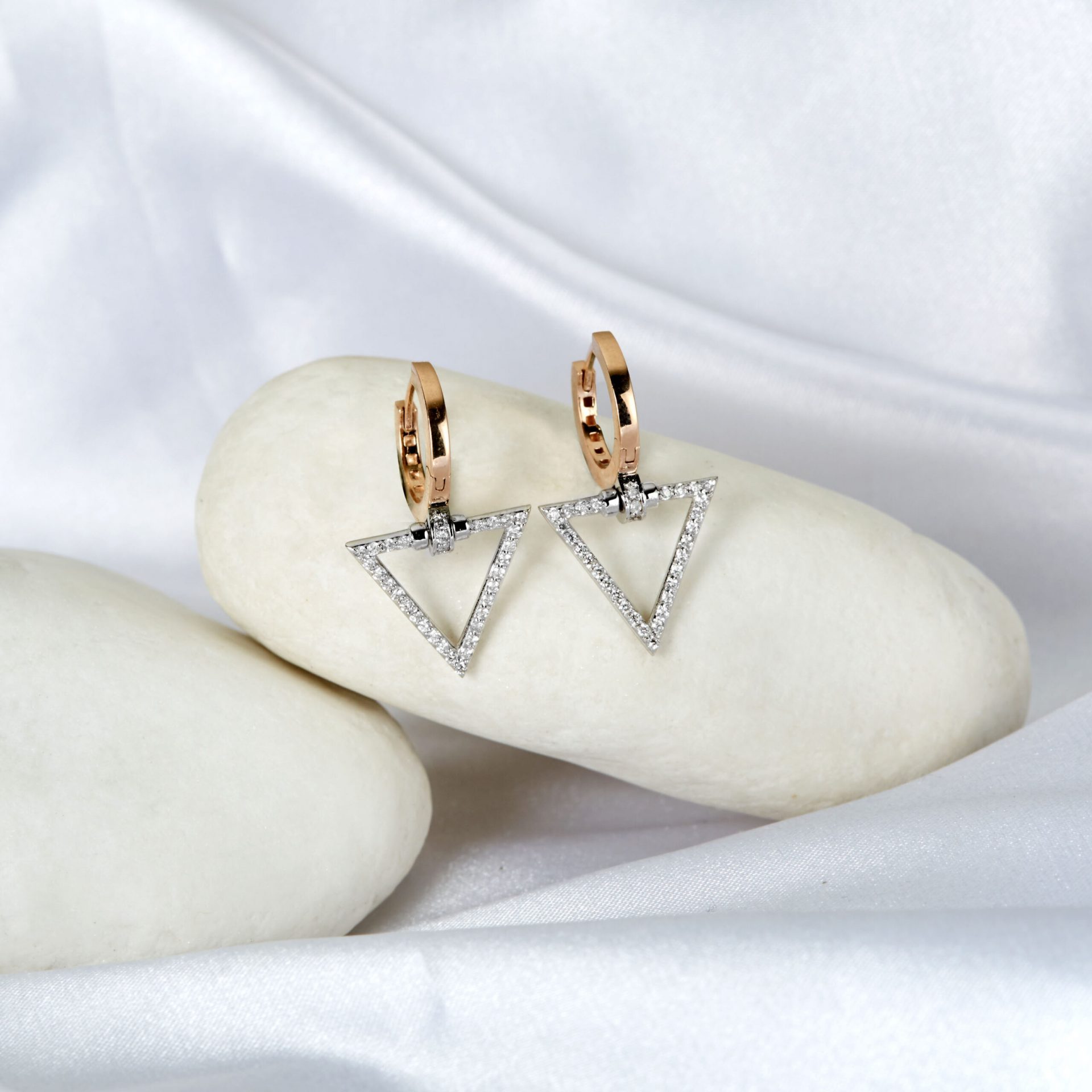 In einer wunderschönen Farbkombination wirken diese MEINSCHMUCK Ohrhänger aus 585er Weiß- und Rotgold mit Diamanten (ca. 0,42ct.). Durch ihre schöne Formgebung eines Dreiecks und die qualitativ hochwertigen Materialien passen die fein gewirkten Ohrhänger zu jedem Look und verleihen jedem Outfit eine elegante Note, ohne sich dabei zu sehr in den Vordergrund zu stellen – ein absoluter Alleskönner mit Potenzial zu ihrem neuen Lieblingsohrschmuck zu werden. Verschlossen werden die bezaubernden Ohrhänger mit praktischen Klappverschluss, die ein bequemes An- und Ablegen gewährleisten und für sicheren Halt sorgen.