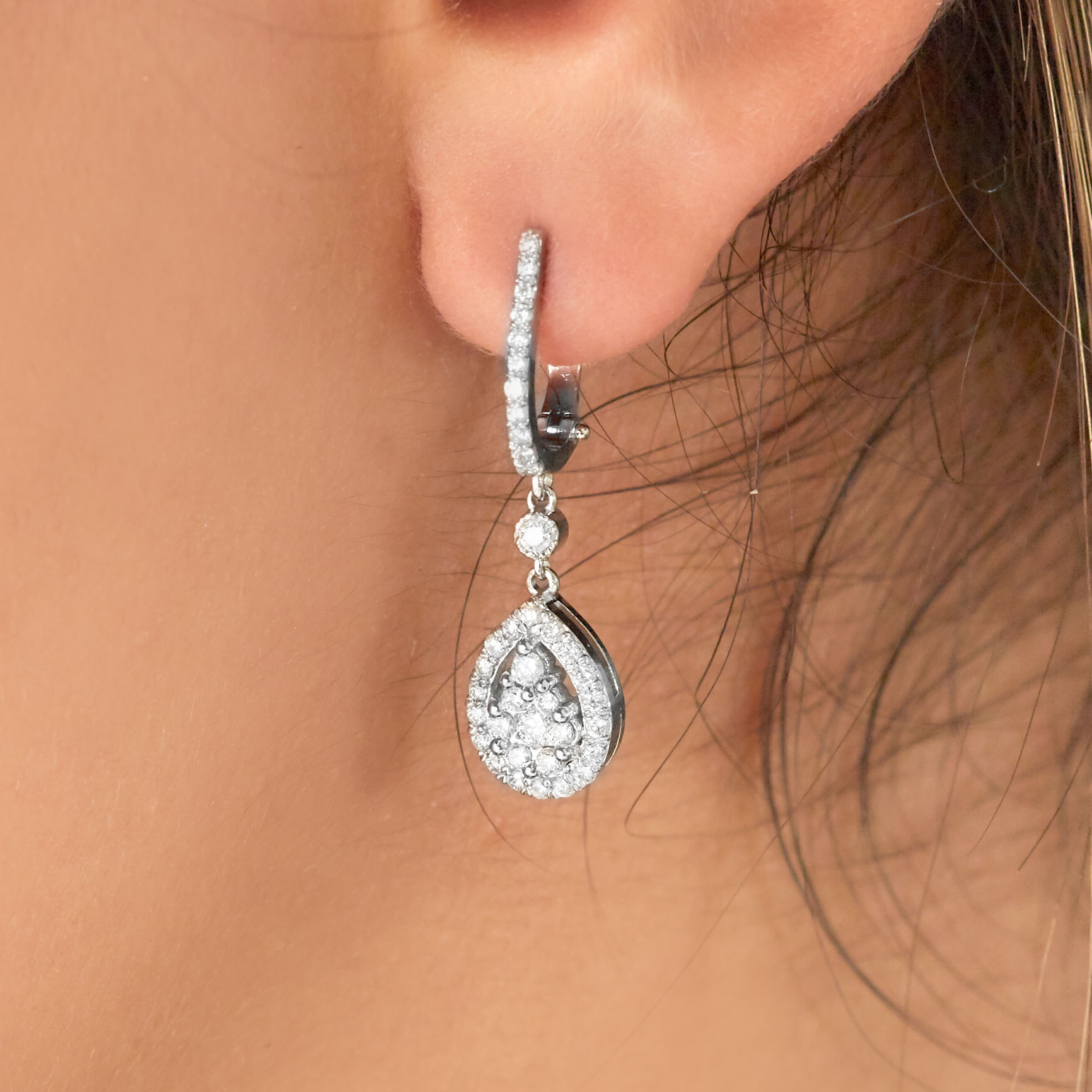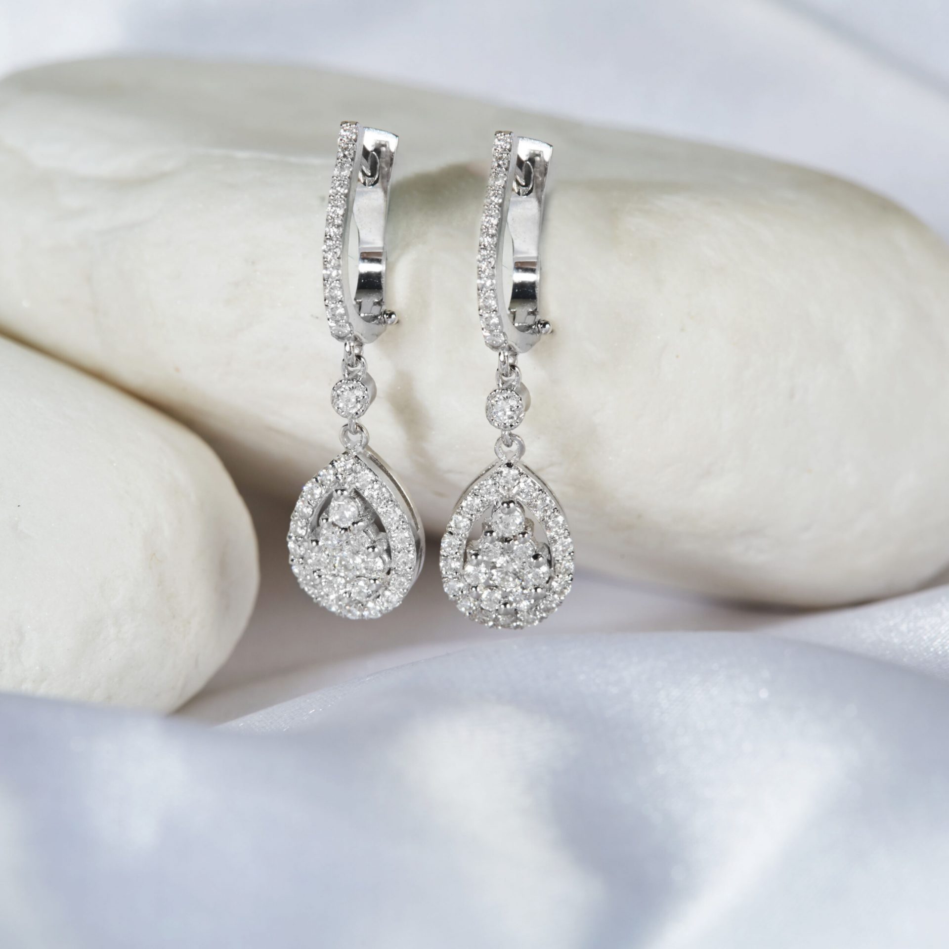 Ohrhänger mit Diamanten in Tropfen-Form gefasst aus Gold