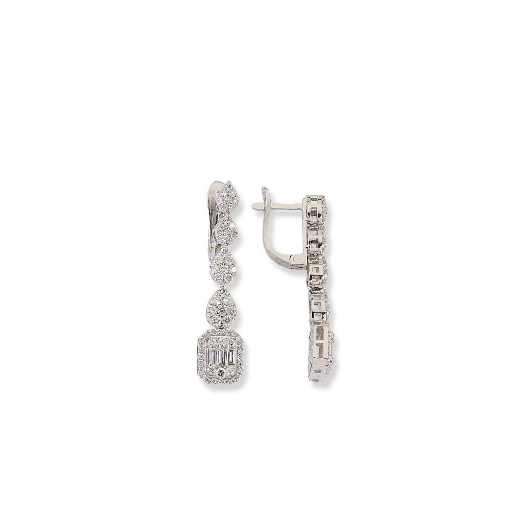 MEINSCHMUCK Ohrhänger aus 585er Weißgold und mit Diamanten (ca. 1,17ct.) besetzt. Es reihen sich mehrere Brillanten in Tropfenform aneinander und am Ende ein Element in quadratischer Form. Die perfekten Ohrhänger für alle die eine ausdrucksstarke Formgebung zu schätzen wissen! Das Design ist zeitlos und filigran und kommt garantiert niemals aus der Mode. Außerdem passt es zu jeder Gelegenheit und jedem Outfit. Das auf Hochglanz polierte 585er Weißgold und die weiß-funkelnden Diamanten unterstreichen den elegant Look. Verschlossen werden die Ohrhänger mit praktischen Klappverschlüssen, die ein bequemes und schnelles An- und Ablegen garantieren. Zusätzlich sorgen sie für den nötigen Halt.