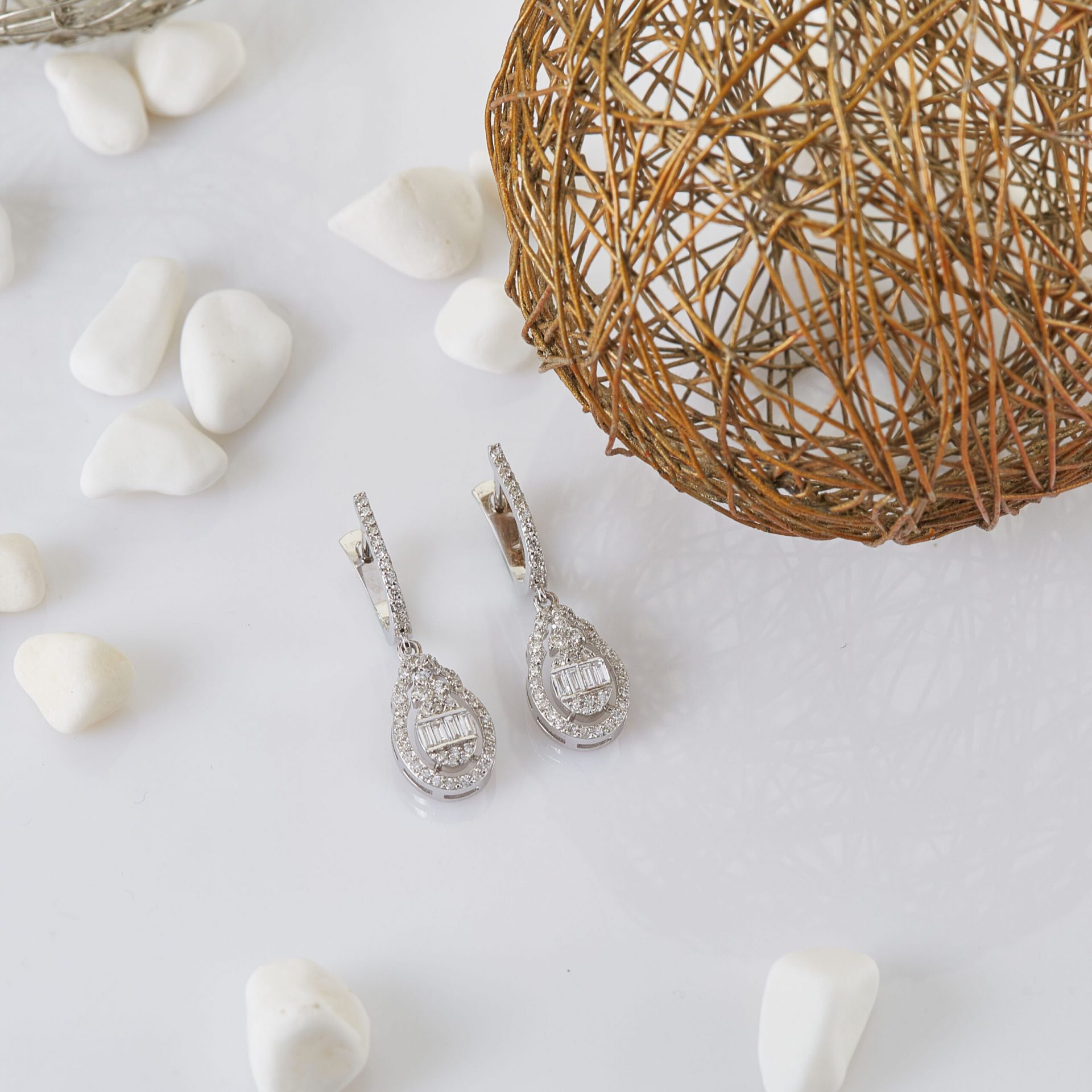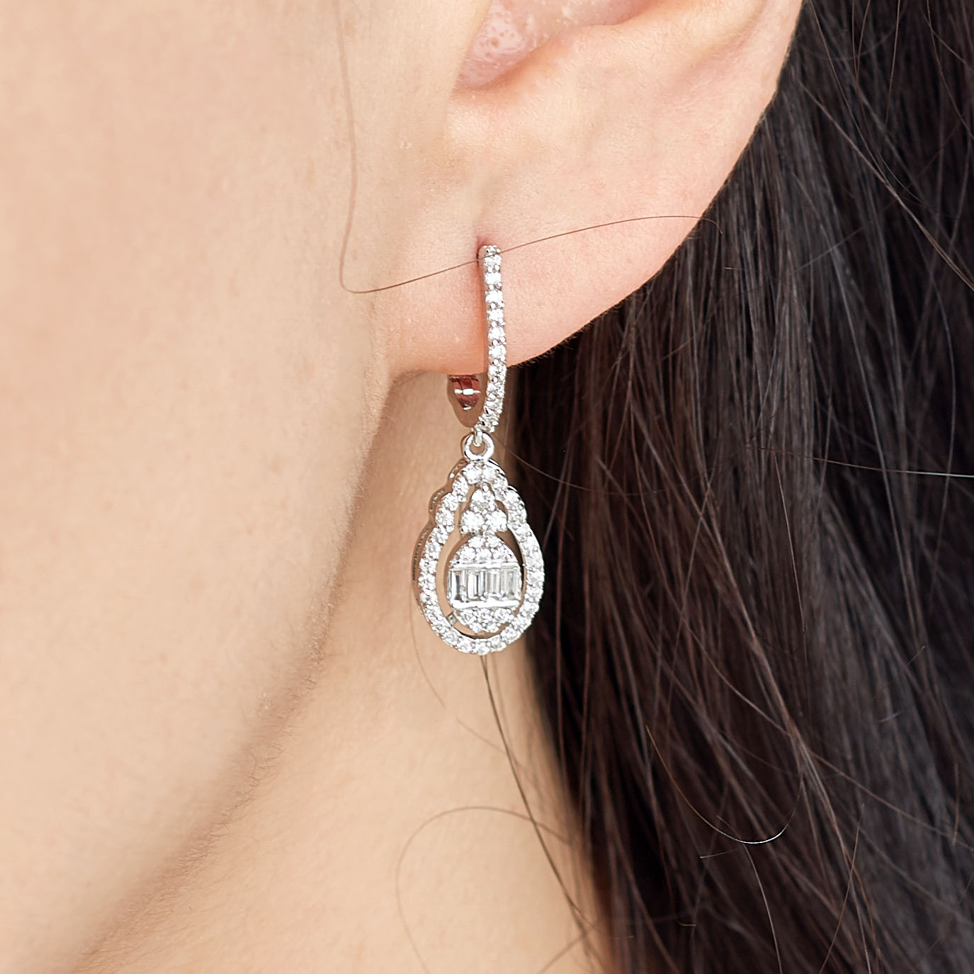 Ovaler Ohrhänger aus Weißgold mit Diamanten