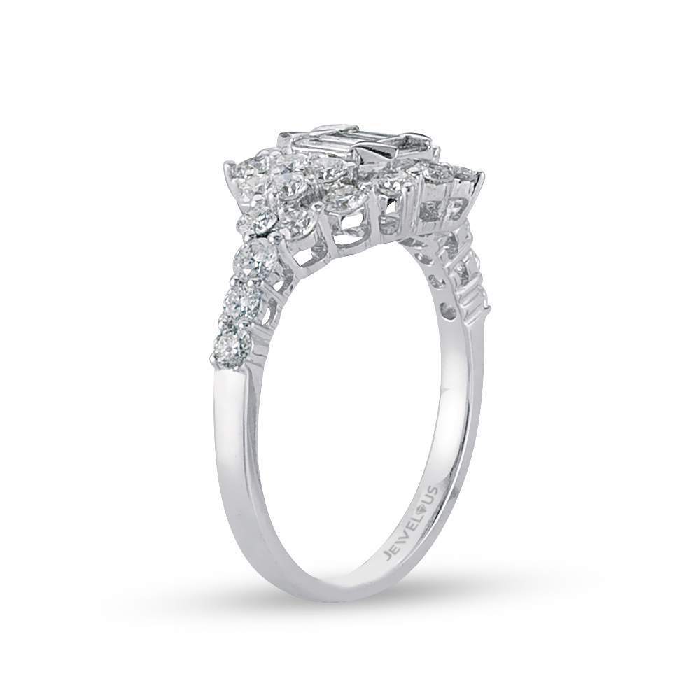 Ein wahrer Eyecatcher dieser -MEINSCHMUCK- Zirkoniaring / Verlobungsring aus 585er Gold. Der Ring wird von fünf Baguettesteinen gekrönt, welche von weiteren Steinen im Brillantschliff wunderschön umrandet sind. Der funkelnde Steinbesatz setzt sich auf der Ringschiene weiter fort. Die schmale Ringschiene gewährleistet ein angenehmes Tragegefühl. Er passt zu zahlreichen Stilrichtungen und zu besonderen Veranstaltungen – Sie werden begeistert sein!