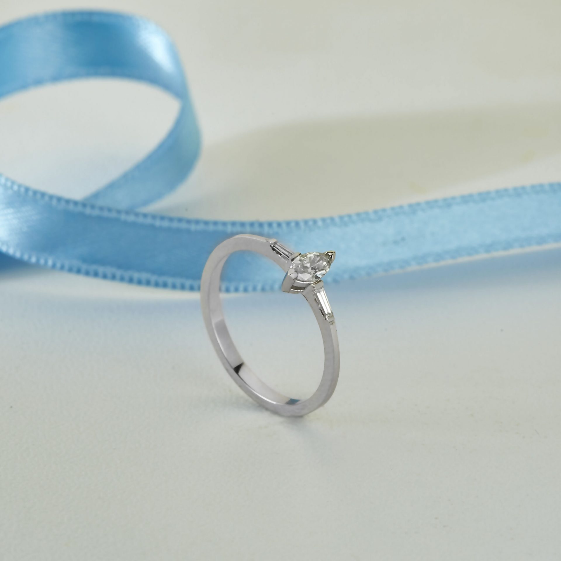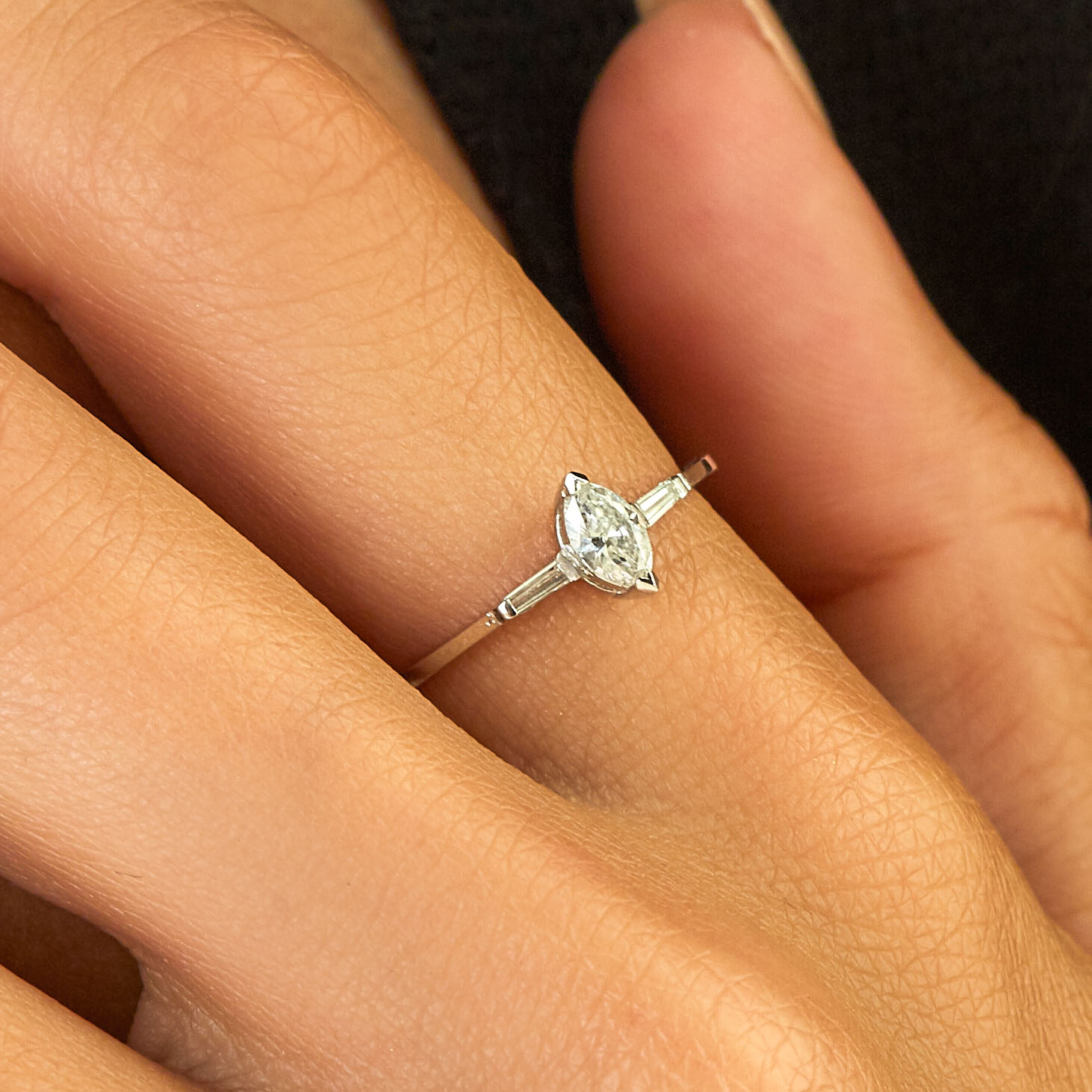 Ein feligraner -MEINSCHMUCK- Diamant Ring aus 585er Gold mit Brillanten in Marquise- und Brillantschliff. Auf dem oberen Teil der Ringschiene dieses Rings wird der Brilliant in Marquiseschliff in Szene gesetzt. Die Brillanten ( ca. 0,26ct.) verfügen über einen magischen Glanz, dem sich niemand entziehen kann. Insbesondere bei Lichteinfall entstehen atemberaubende Reflexionen. Je mehr Karat ein Diamant besitzt, desto größer ist sein Seltenheitswert und desto wertvoller ist er somit auch. Das Gold ist auf Hochglanz poliert, was seinen Schimmer noch mehr zum Vorschein bringt. Er ist ein Symbol unvergesslicher Momente, denn jeder Diamant kann für ein besonderes Ereignis stehen. Die schmale Ringschiene aus 585er Gold gewährleistet ein angenehmes Tragegefühl. Er passt zu zahlreichen Stilrichtungen und zu besonderen Veranstaltungen – Sie werden begeistert sein! Dieser wunderschöne Ring eignet sich wunderbar als Antragsring oder als Vorsteckring!