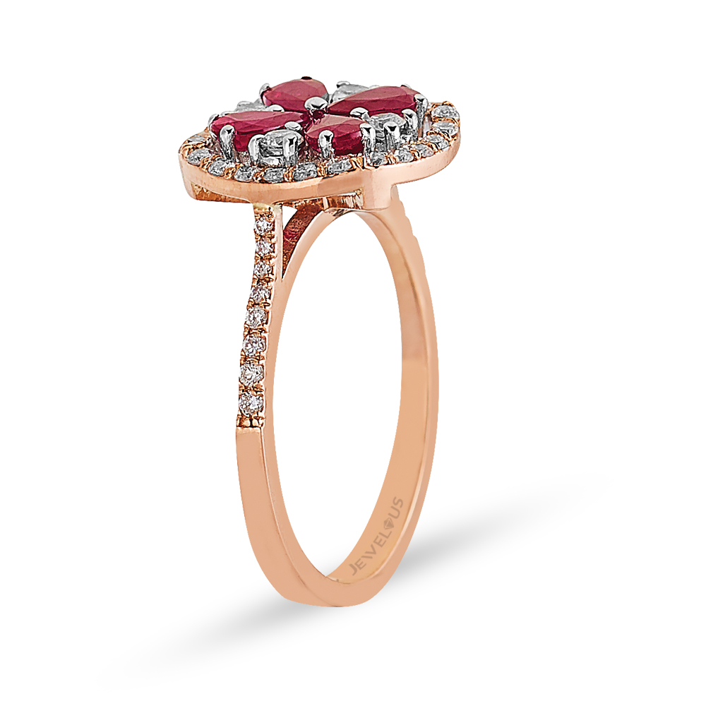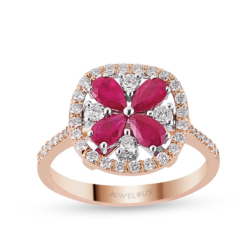 Formvollend schön dieser -MEINSCHMUCK- Diamantring aus 585er Gold. Die Brillanten (ca. 1,52ct.) sind in Blumenform gefasst und mit weiteren Brillanten in kreisrunderform gerahmt. Die Rubine bilden die Blütenform und machen den Ring zum absoluten Hingucker. Die Brillanten sind im Pear- und Brillantschliff und verfügen über einen magischen Glanz, dem sich niemand entziehen kann. Insbesondere bei Lichteinfall entstehen atemberaubende Reflexionen. Je mehr Karat ein Diamant besitzt, desto größer ist sein Seltenheitswert und desto wertvoller ist er somit auch. Der funkelnde Brillantbesatz setzt sich auf der Ringschiene weiter fort. Die Ringschiene gewährleistet ein angenehmes Tragegefühl. Er passt zu zahlreichen Stilrichtungen und zu besonderen Veranstaltungen – Sie werden begeistert sein! Dieser wunderschöne Brillantring eignet sich auch wunderbar als Geschenk! Dieser Brillantring ist in unterschiedlichen Farben erhältlich.