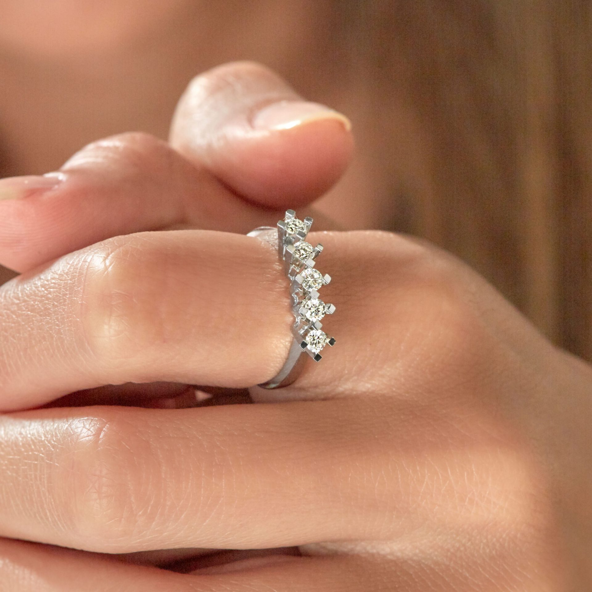Ein Eyecatcher dieser -MEINSCHMUCK Diamant Ring- aus 585er Gold mit Brillanten in feligraner Hochfassung. Auf dem oberen Teil der Ringschiene dieses Rings aus 585er Weißgold versammeln sich mehrere Diamanten mit ca. 0,42ct. (gesamt). Die Brillanten sind im Brillantschliff und verfügen über einen magischen Glanz, dem sich niemand entziehen kann. Insbesondere bei Lichteinfall entstehen atemberaubende Reflexionen. Je mehr Karat ein Diamant besitzt, desto größer ist sein Seltenheitswert und desto wertvoller ist er somit auch. Das Gold ist auf Hochglanz poliert, was seinen Schimmer noch mehr zum Vorschein bringt. Er ist ein Symbol unvergesslicher Momente, denn jeder Diamant kann für ein besonderes Ereignis stehen. Die schmale Ringschiene aus 585er Gold gewährleistet ein angenehmes Tragegefühl. Er passt zu zahlreichen Stilrichtungen und zu besonderen Veranstaltungen – Sie werden begeistert sein! Dieser wunderschöne Ring eignet sich wunderbar als Antragsring oder als Vorsteckring!