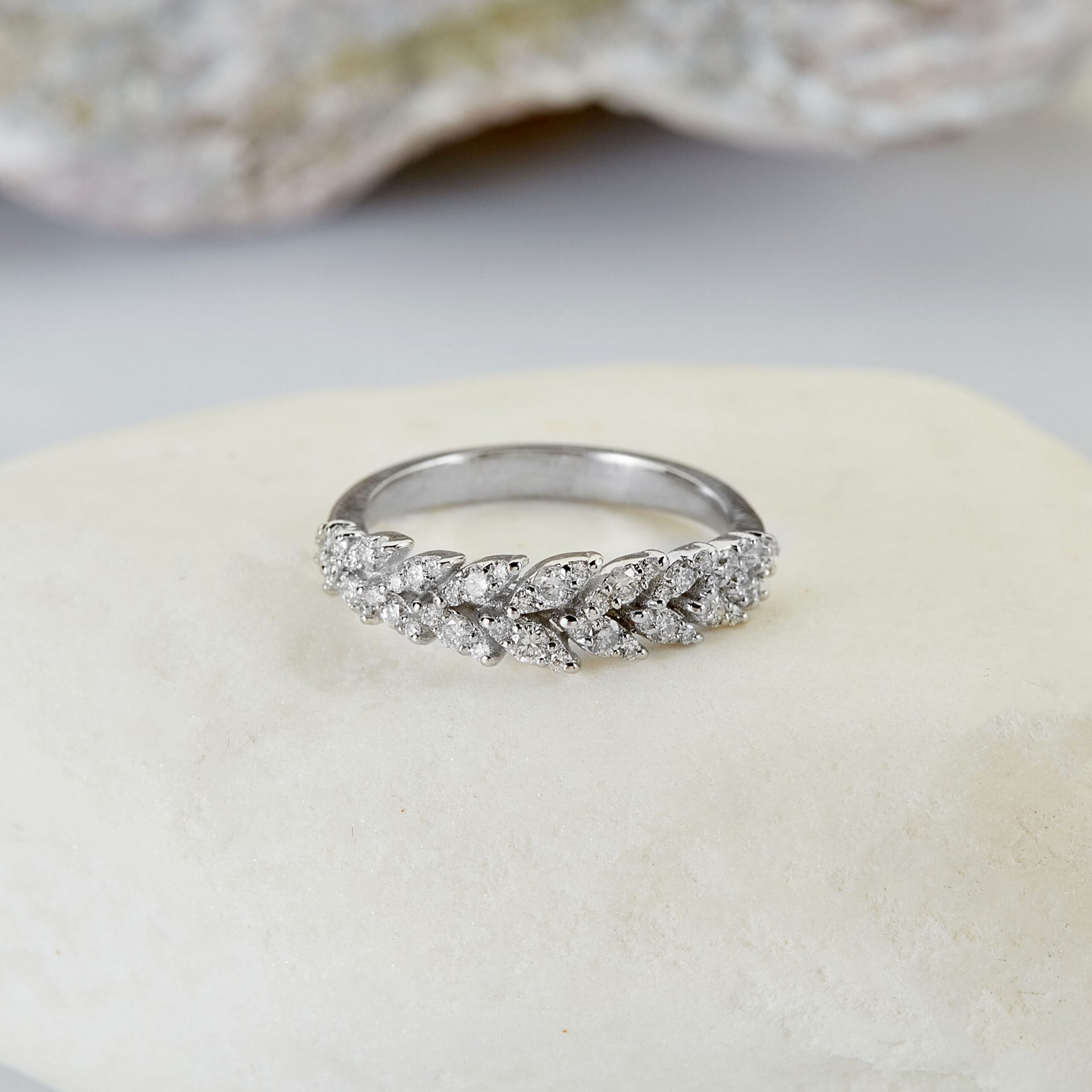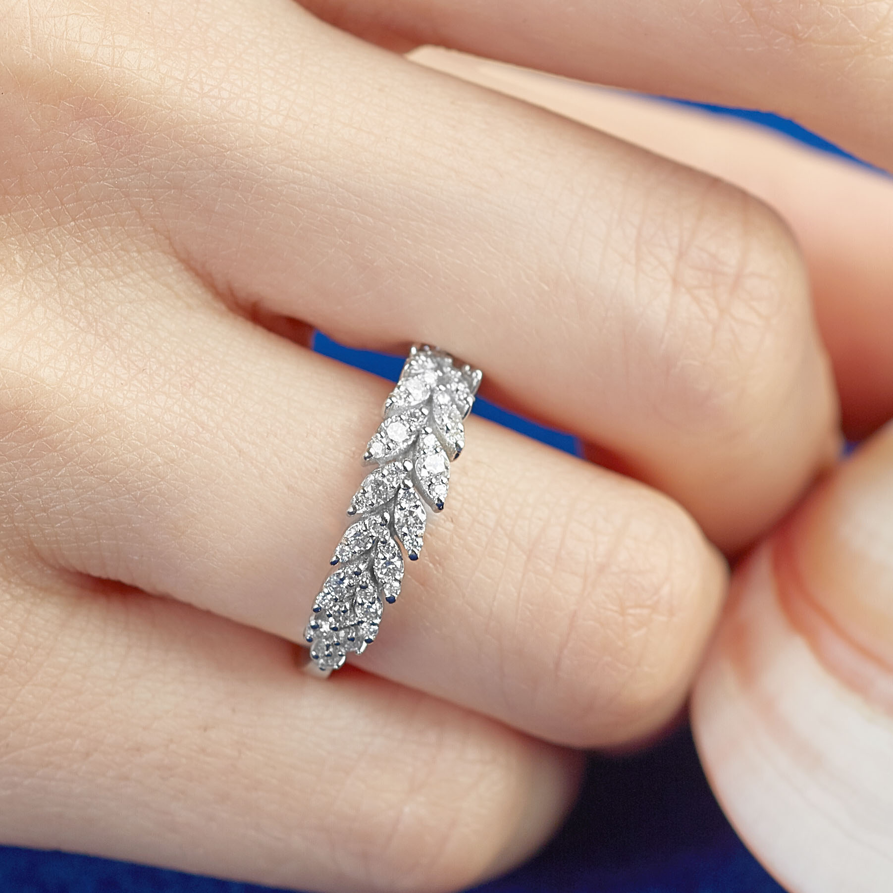Ein eleganter Zirkoniaring – von der Natur inspirierter Ring aus 585er Weißgold mit Zirkoniasteinen im Brillantschliff in einem wunderschönen Olivenzweigmotiv. Der Olivenzweig ist ein allgemein bekanntes Symbol des Friedens. Ein Schmuckstück, das zu zahlreichen Looks und Anlässen passen wird. Wir legen bei unserem Schmuck nur Wert auf eine exzellente Qualität. Ein MUST HAVE, mach diesen Ring zu Deinem!