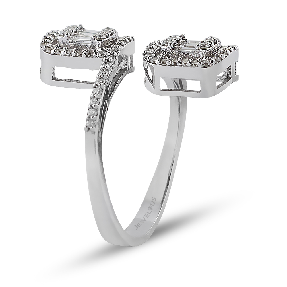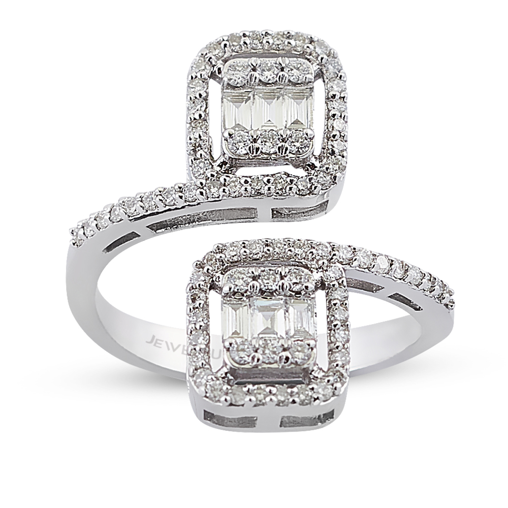 Toller Blickfang – ein MEINSCHMUCK Goldring mit Zirkoniasteinen. Die Ringschiene aus 585er Weißgold schmiegt sich kunstvoll an den edlen Blickfang dieses Ringes an: die in rechteckiger Form gefassten Zirkoniasteine im Brillant- und Baguetteschliff. Die Ringschiene teilt sich im oberen Bereich und macht den Ring dadurch zum absoluten Eyecatcher. Zudem wird etwa die Hälfte der Ringschiene von weiteren strahlenden weißen Zirkoniasteinen geziert. Die schmale Ringschiene gewährleistet ein angenehmes Tragegefühl. Dieser wunderschöne Ring eignet sich auch wunderbar als Antragsring!