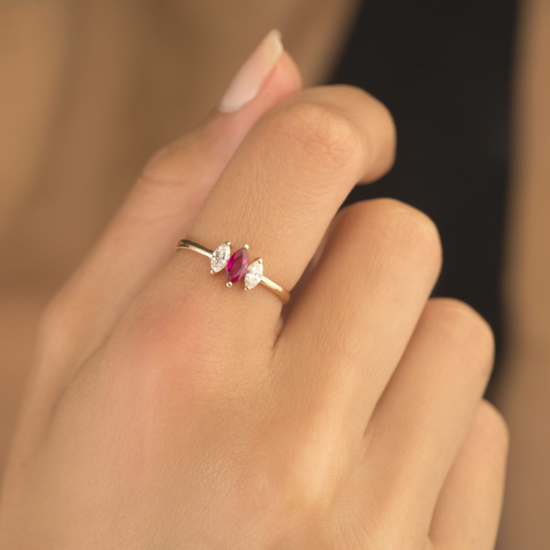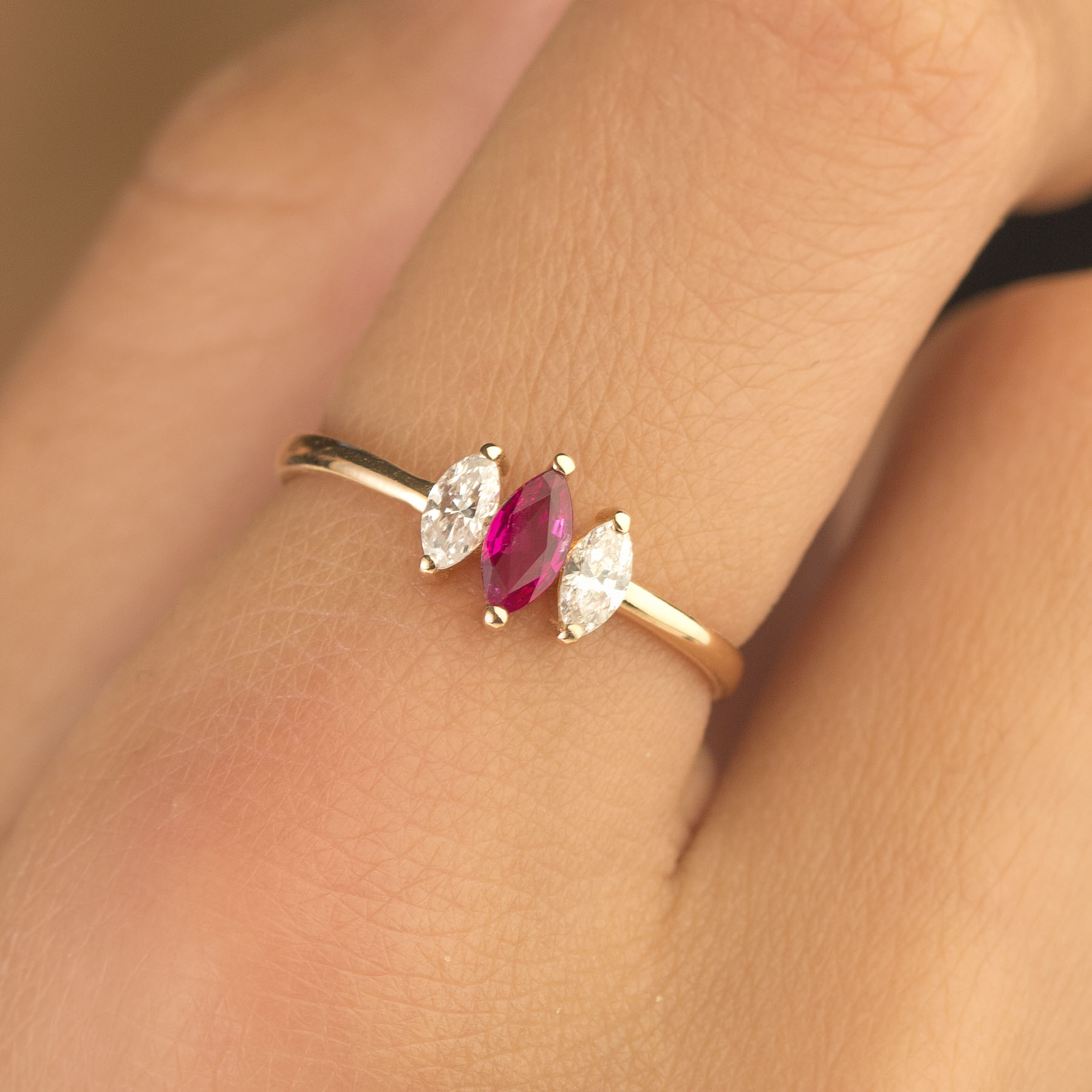 Ein feligraner -MEINSCHMUCK- Diamantring aus 585er Rotgold mit zwei schönen Brillanten (ca. 0,28ct.) in Marquise Schliff und einem rosa Saphir (ca.0,27ct.) in Marquise Schliff im Fokus! Die außen leicht gewölbte Ringschiene gewährleistet ein angenehmes Tragegefühl – Sie werden begeistert sein. Dieser wunderschöne Brillantring eignet sich auch wunderbar als Geschenk!