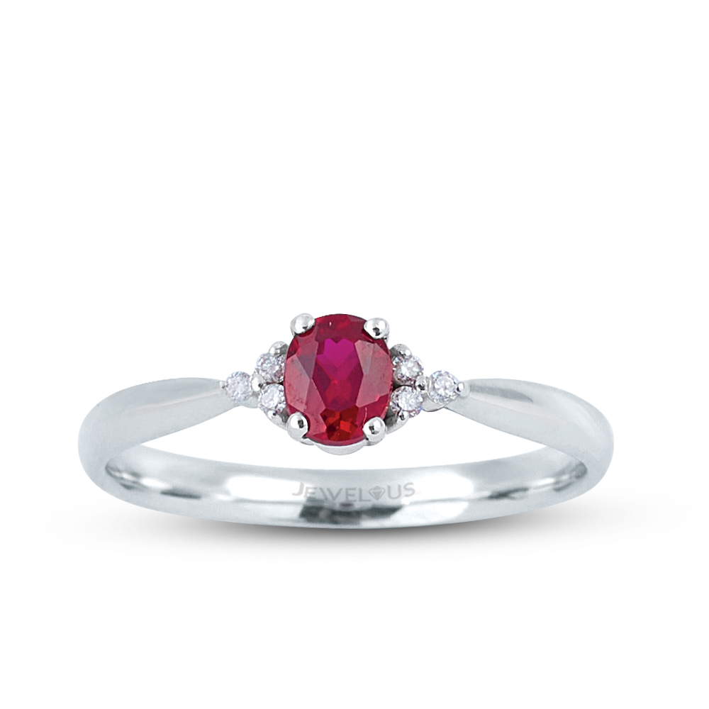 Voller Glanz dieser -MEINSCHMUCK- Rubin Ring / Diamant Ring aus 585er Weißgold. Sechs klare Brillanten ( ca. 0,05 ct. ) im Brillantschliff bringen den zentralen Rubin ( ca. 0,46 ct. )in ovalem Schliff zusätzlich zum Strahlen. Diese schöne Kombination macht aus dem filigranen Ring ein optisch abwechslungsreiches Schmuckstück, das zu zahlreichen Looks passen wird. Wir legen bei unserem Diamantschmuck nur Wert auf eine exzellente Qualität. Die schmale Ringschiene gewährleistet ein angenehmes Tragegefühl. Dieser wunderschöne Smaragd Ring eignet sich auch wunderbar als Antragsring oder als Geschenk!