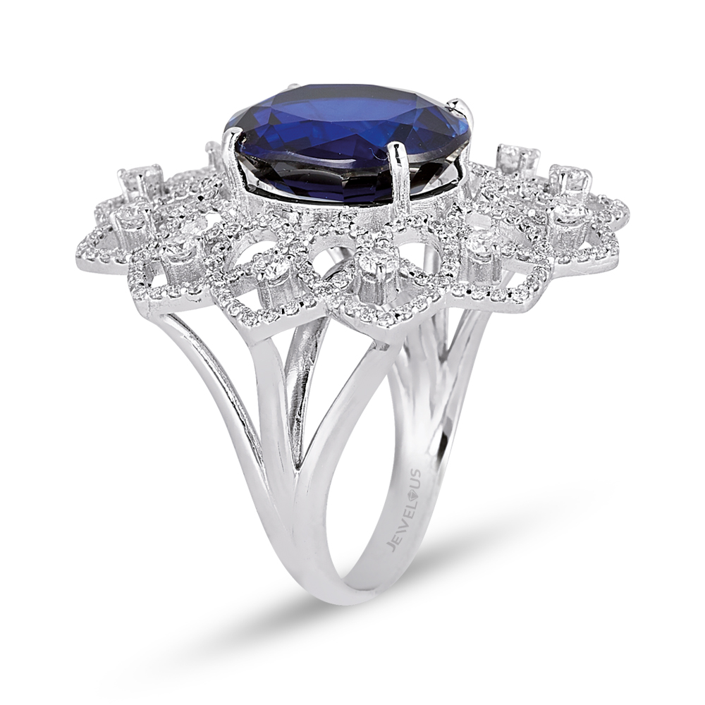 Eleganter MEINSCHMUCK Ring mit königlichem Flair. Der auffällige Ring aus 585er Weißgold ist mit einem beeindruckenden Zirkoniastein in tiefem Blau besetzt. Weitere strahlende klare Zirkoniasteine umrahmen den zentralen Stein und bringen ihn zusätzlich zum Funkeln. Die schmale Ringschiene aus 585er Gold gewährleistet ein angenehmes Tragegefühl. Er passt zu zahlreichen Stilrichtungen und zu besonderen Veranstaltungen – Ein MUST HAVE, mach diesen Ring zu Deinem!