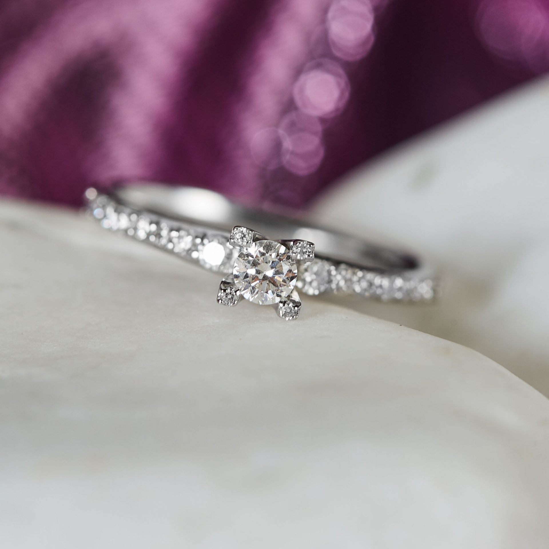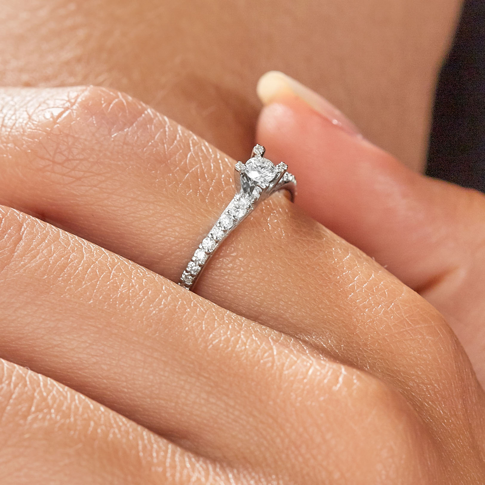 Dieser klassische MEINSCHMUCK Solitär / Verlobungsring präsentiert den Diamanten (ca. 0,16ct.) mit Anmut und Raffinesse auf einer schmalen Ringschiene, welche die Größe und Brillanz des Steins hervorhebt. Der funkelnde Brillantbesatz (ca. 0,24ct.) setzt sich auf der Ringschiene weiter fort. Die schmale Ringschiene aus 585er Gold gewährleistet ein angenehmes Tragegefühl. Er passt zu zahlreichen Stilrichtungen und zu besonderen Veranstaltungen – Sie werden begeistert sein! Dieser wunderschöne Brillantring eignet sich auch wunderbar als Antragsring!