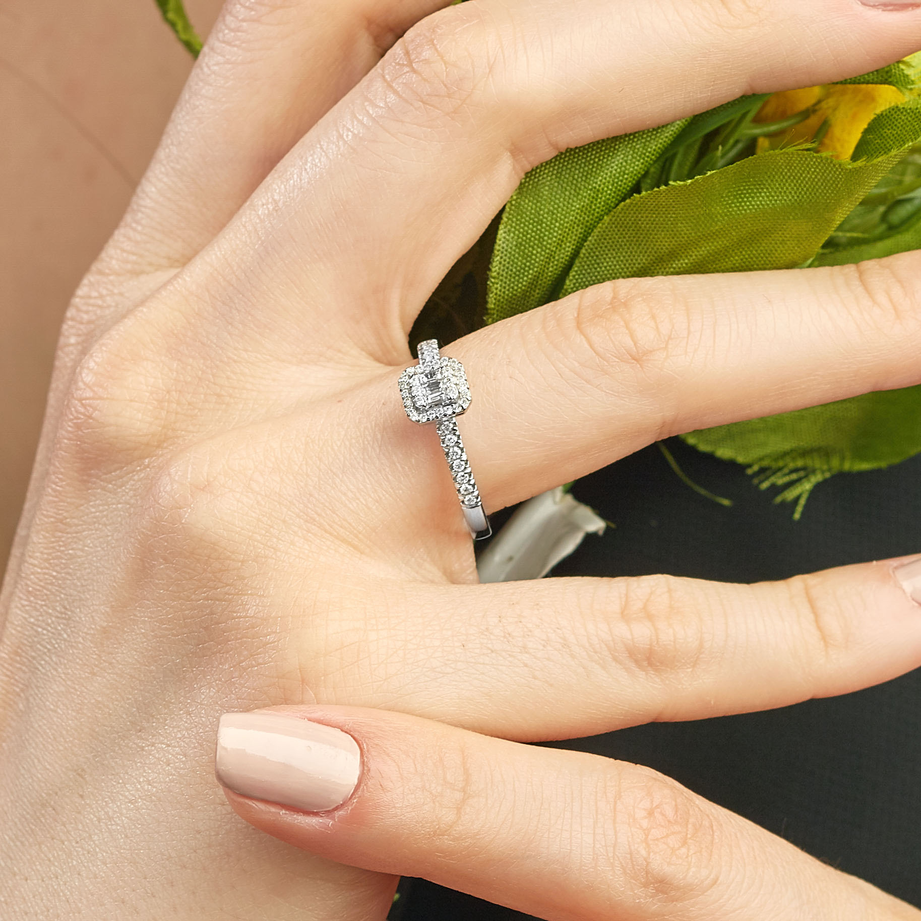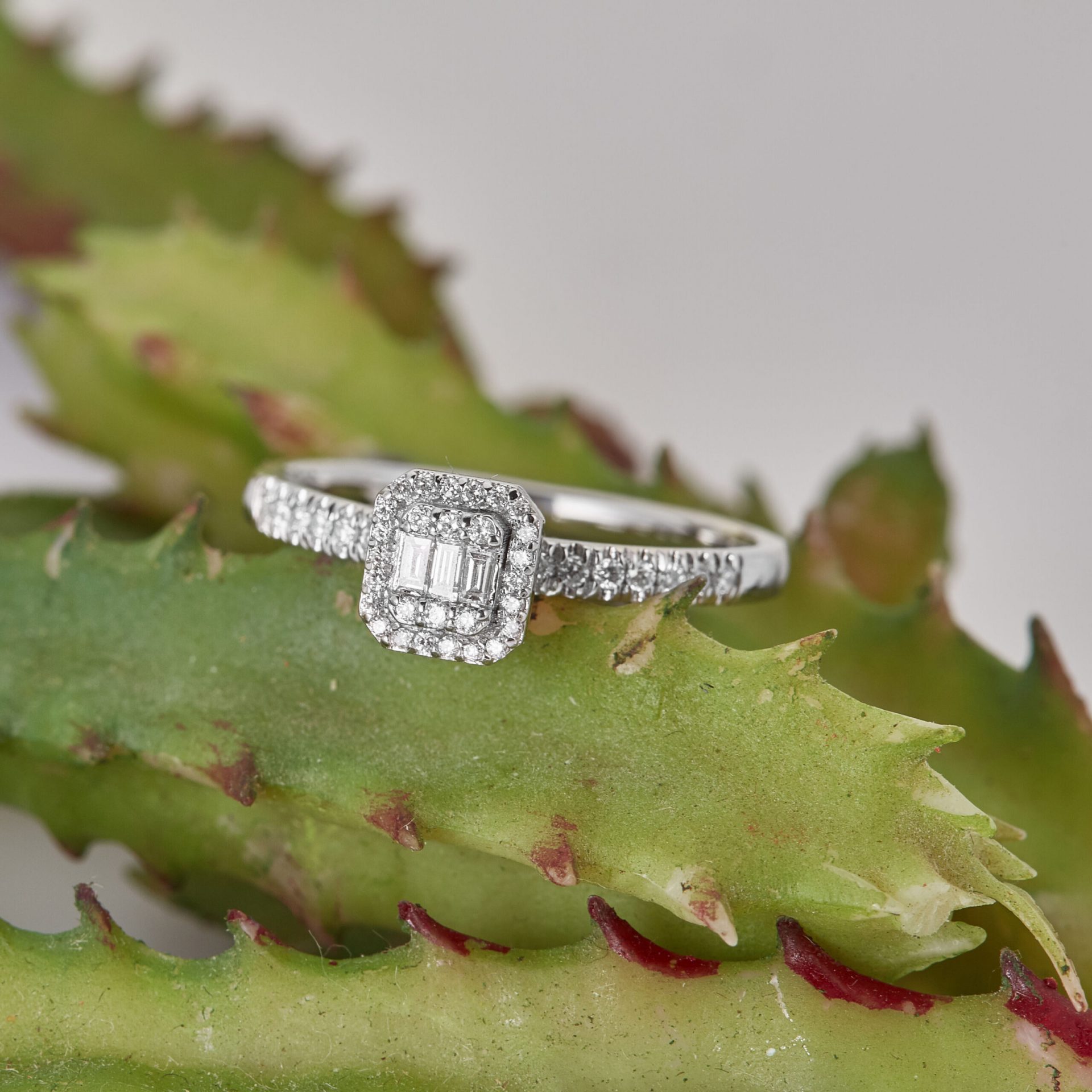 MEINSCHMUCK- Solitärring / Verlobungsring aus 585er Gold wird von Zirkoniasteinen in Baguette- und Brillantschliff gekrönt. Gehalten werden die Zirkoniasteine von einer quadratischen Fassung mit abgerundeten Kanten. Der Zirkoniabesatz setzt sich auf der Ringschiene fort. Die Ringschiene gewährleistet ein angenehmes Tragegefühl. Er passt zu zahlreichen Stilrichtungen und zu besonderen Veranstaltungen – Sie werden begeistert sein!