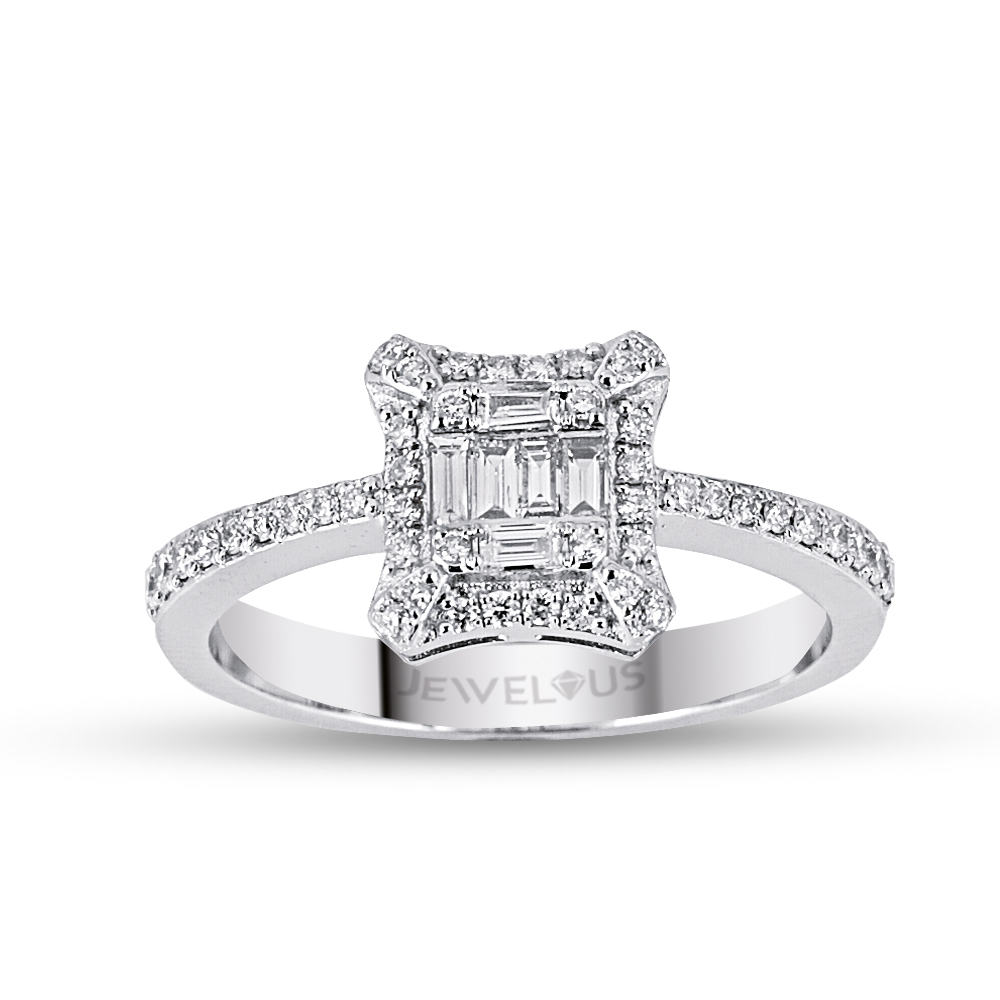 Ein funkelnder -MEINSCHMUCK- Diamantring aus 585er Gold wird von Brillanten in Baguette- und Brillantschliff gekrönt. Gehalten werden die Steine von einer quadratischen Fassung mit abgerundeten Kanten. Der Brillantbesatz setzt sich auf der Ringschiene fort. Die schmale Ringschiene gewährleistet ein angenehmes Tragegefühl. Er passt zu zahlreichen Stilrichtungen und zu besonderen Veranstaltungen – Sie werden begeistert sein! Insgesamt wird dieser Ring mit Brillanten ca. 0,46ct. geziert. Dieser wunderschöne Brillantring eignet sich auch wunderbar als Antragsring!