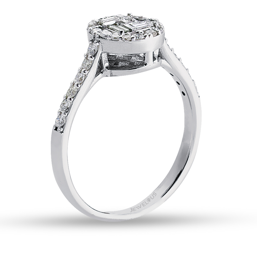Ein abwechslungsreiches Spiel bestimmt das Design dieses -MEINSCHMUCK- Verlobungsrings aus 585er Gold. Der Ring wird von Zirkoniasteinen im Baguette- und Brillantschliff gekrönt. Gehalten werden die Steine von einer kreisrunden Fassung. Der funkelnde Zirkoniabesatz setzt sich auf der Ringschiene weiter fort. Die schmale Ringschiene gewährleistet ein angenehmes Tragegefühl. Dieser wunderschöne Ring eignet sich auch wunderbar als Antragsring!