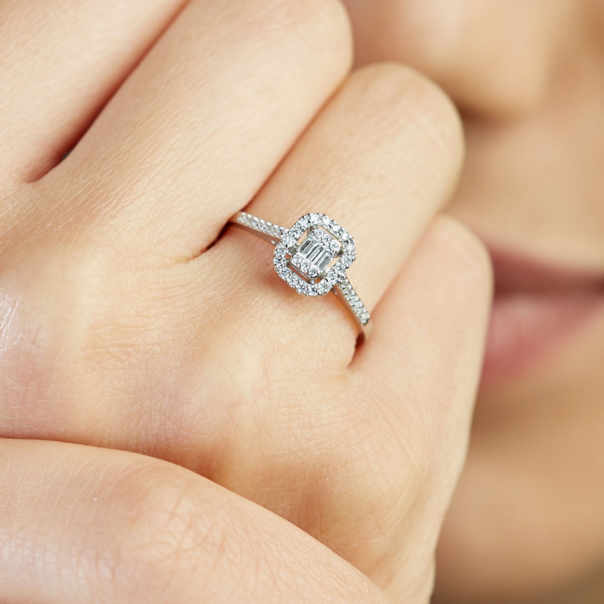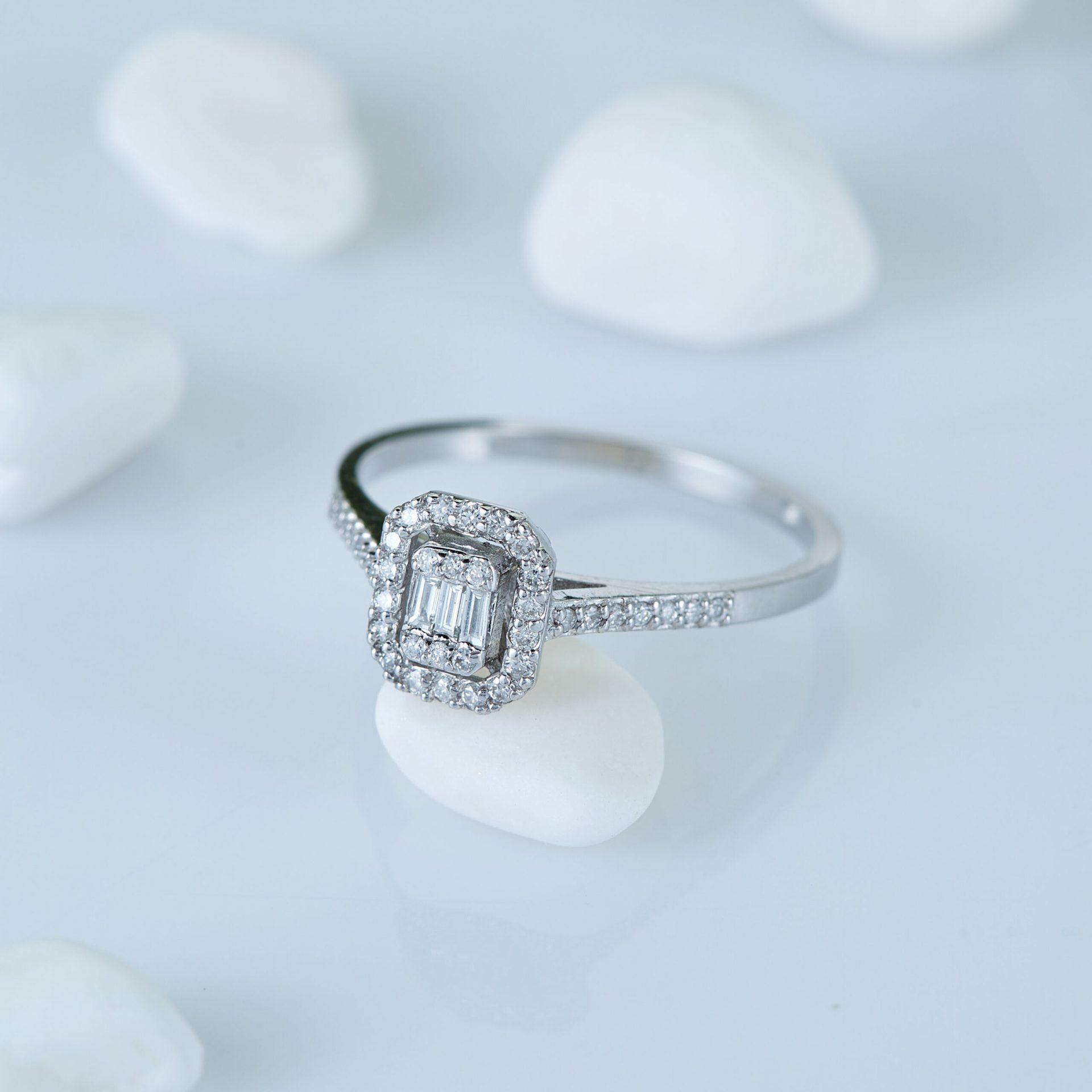 Ein funkelnder -MEINSCHMUCK- Zirkoniaring aus 585er Gold wird von Steinen in Baguette- und Brillantschliff gekrönt. Gehalten werden die Steine von einer quadratischen Fassung mit abgerundeten Kanten. Der Steinbesatz setzt sich auf der Ringschiene fort. Die schmale Ringschiene gewährleistet ein angenehmes Tragegefühl. Er passt zu zahlreichen Stilrichtungen und zu besonderen Veranstaltungen – Sie werden begeistert sein!
