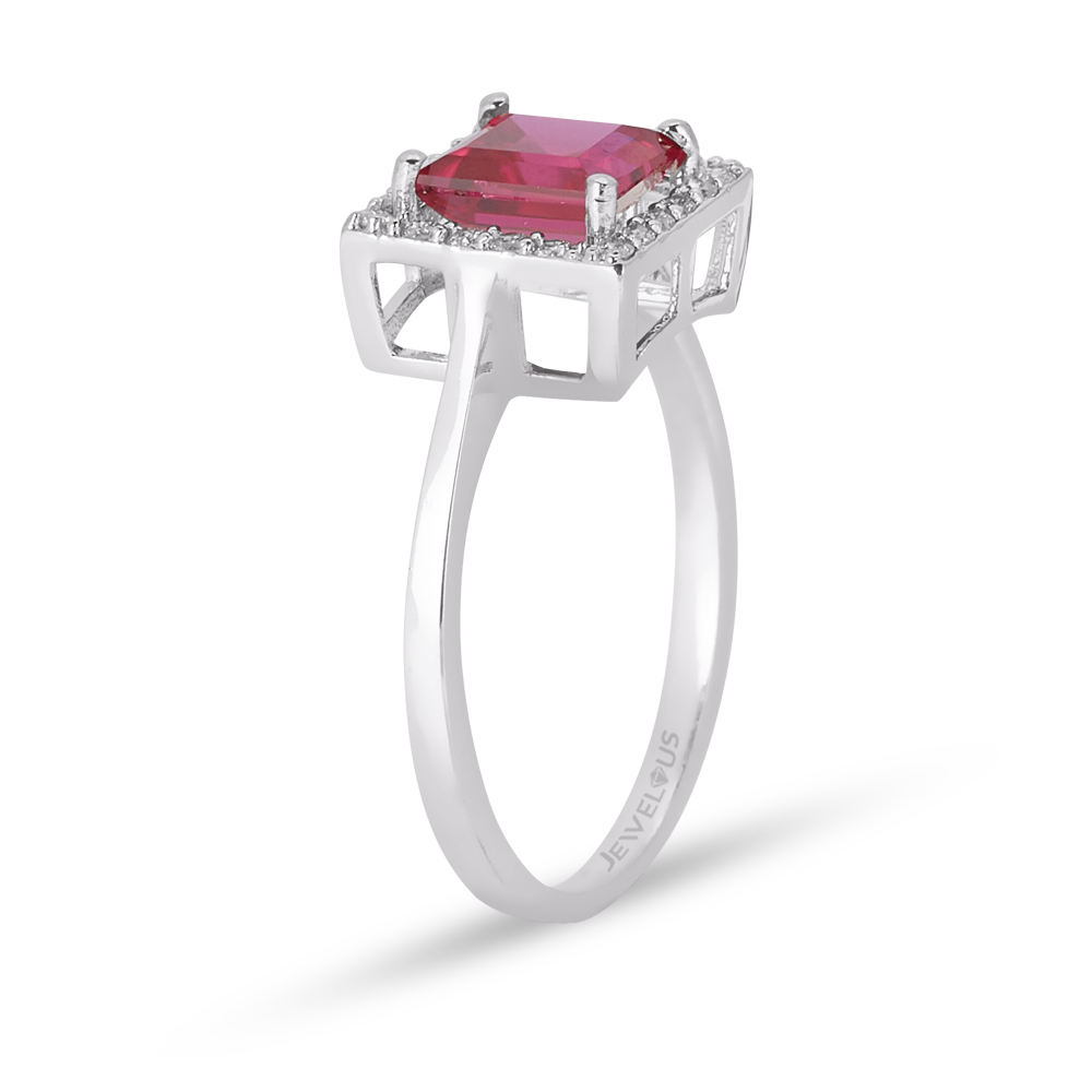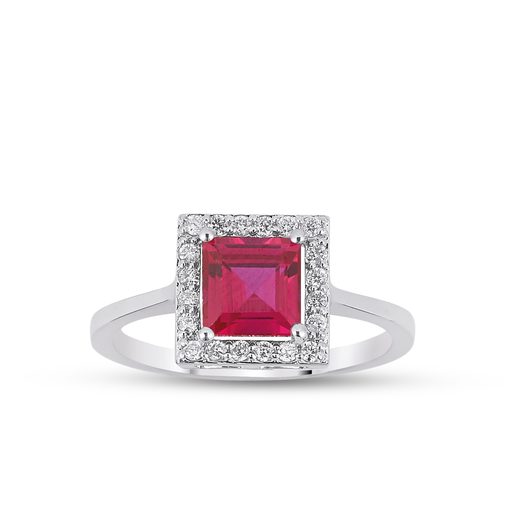 Ein formvollendet schöner -MEINSCHMUCK- Verlobungsring / Diamant / Rubin Ring aus 585er Weißgold. Klar strahlende Diamanten ( ca. 0,17 ct. ) im Brillantschliff bringen den zentralen Rubin ( ca. 1,54 ct. )in Princess Schliff zusätzlich zum Strahlen. Diese schöne Kombination macht aus dem filigranen Ring ein optisch abwechslungsreiches Schmuckstück, das zu zahlreichen Looks passen wird. Wir legen bei unserem Diamantschmuck nur Wert auf eine exzellente Qualität. Die schmale Ringschiene gewährleistet ein angenehmes Tragegefühl. Dieser wunderschöne Diamant Ring eignet sich wunderbar als Verlobungsring oder als Geschenk! Zudem besteht die Möglichkeit die Innenseite des Ringes mit einer Gravur versehen zu lassen.