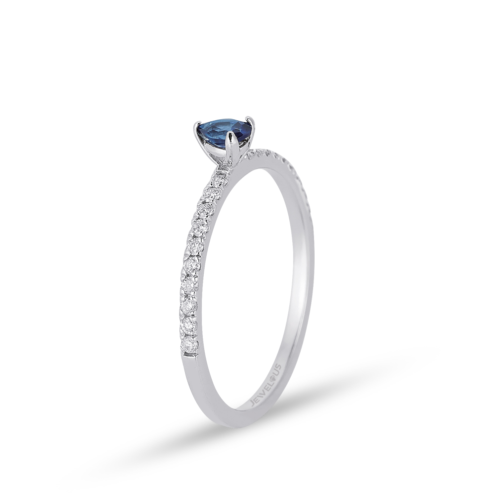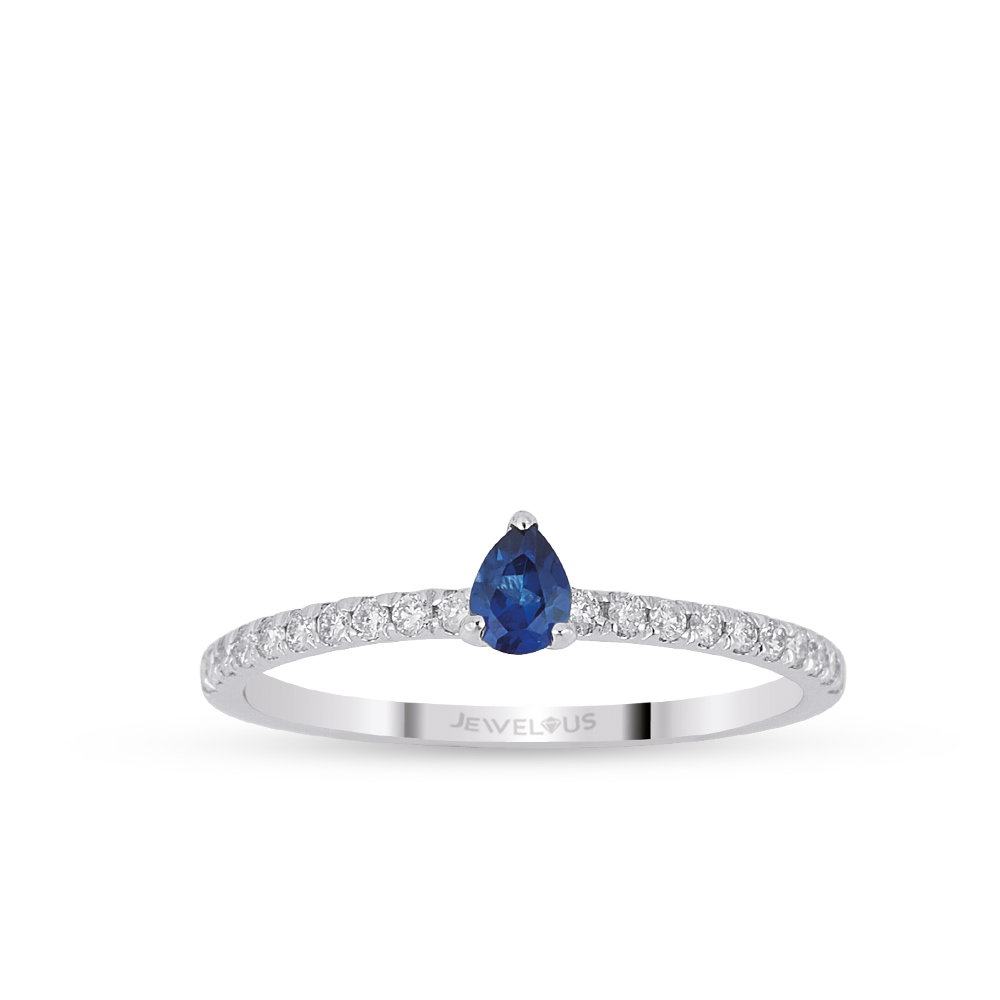 Ein traumhaft-filigraner Blickfang – das ist dieser MEINSCHMUCK Diamantring / Verlobungsring / Saphirring aus 585er Weißgold. Bei dem Hauptstein handelt es sich um einen Saphir (ca. 0,15 ct.) im Pear Schliff, welcher von strahlend, weißen Brillanten ( ca. 0,15 ct.) gerahmt wird. Die Brillanten sind zur Hälfte auf der Ringschiene im Verschnitt gesetzt. Sie werden begeistert sein! Die schmale Ringschiene gewährleistet ein angenehmes Tragegefühl. Dieser wunderschöne Brillantring eignet sich auch wunderbar als Verlobungsring oder als Geschenk!