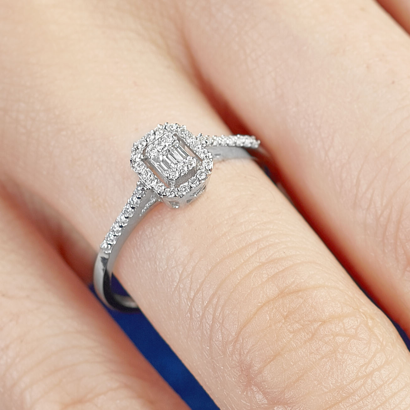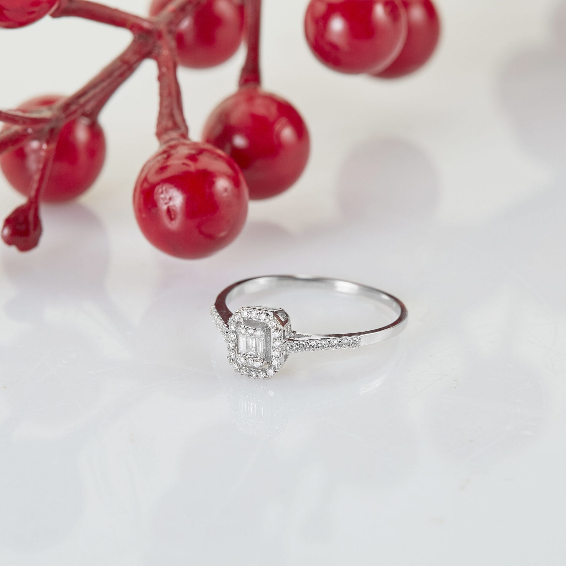 Ein funkelnder -MEINSCHMUCK- Ring aus 585er Gold wird von Zirkoniasteinen in Baguette- und Brillantschliff gekrönt. Gehalten werden die Steine von einer quadratischen Fassung mit abgerundeten Kanten. Der Steinbesatz setzt sich auf der Ringschiene fort. Die schmale Ringschiene gewährleistet ein angenehmes Tragegefühl. Er passt zu zahlreichen Stilrichtungen und zu besonderen Veranstaltungen – Sie werden begeistert sein! Ein MUST HAVE, mach diesen Ring zu Deinem!