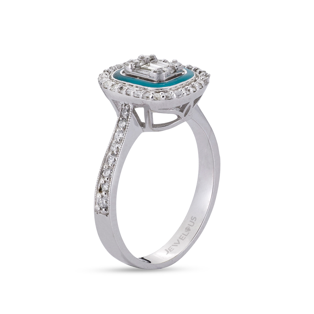 Ein abwechslungsreiches Spiel bestimmt das Design dieses -MEINSCHMUCK- Zirkoniaring aus 585er Gold. Der Ring wird von Zirkoniasteine in Baguette- und Brillantschliff gekrönt welche zudem in einem türkis als Umrandung hervorgehoben werden. Gehalten werden die Steine von einer quadratischen Fassung mit abgerundeten Kanten. Die Fassung zieren weitere Zirkoniasteine im Verschnitt gesetzt mit wundervollem Funkeln. Der funkelnde Steinbesatz setzt sich auf der Ringschiene weiter fort. Die schmale Ringschiene gewährleistet ein angenehmes Tragegefühl. Dieser wunderschöne Ring eignet sich auch wunderbar als Antragsring! Diesen Ring erhalten Sie in vielen verschiedenen Farbkombinationen!