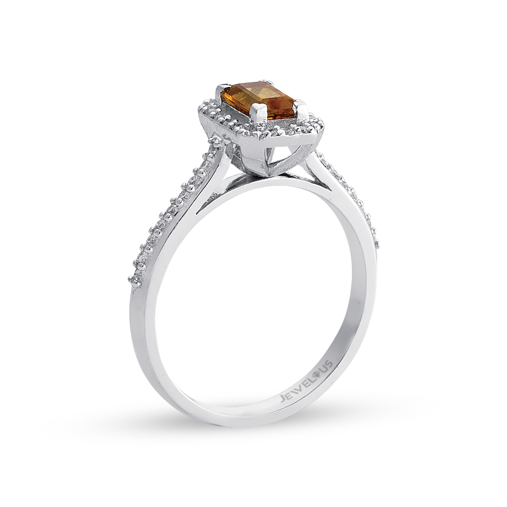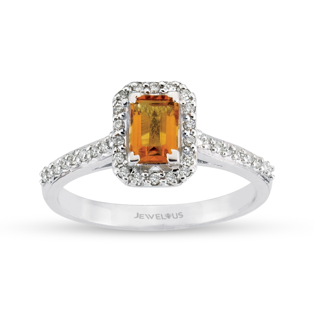 Ein traumhafter Blickfang – das ist dieser MEINSCHMUCK Schmuckring mit orangenem Stein aus 585er Weißgold. Bei dem Hauptstein handelt es sich um einen orangenen Zirkonia im radiant Schliff, welcher von strahlend, weißen Zirkoniasteinen gerahmt wird. Sie werden begeistert sein! Der funkelnde Steinbesatz setzt sich auf der Ringschiene weiter fort. Die schmale Ringschiene gewährleistet ein angenehmes Tragegefühl. Dieser wunderschöne Ring eignet sich auch wunderbar als Verlobungsring oder als Geschenk!