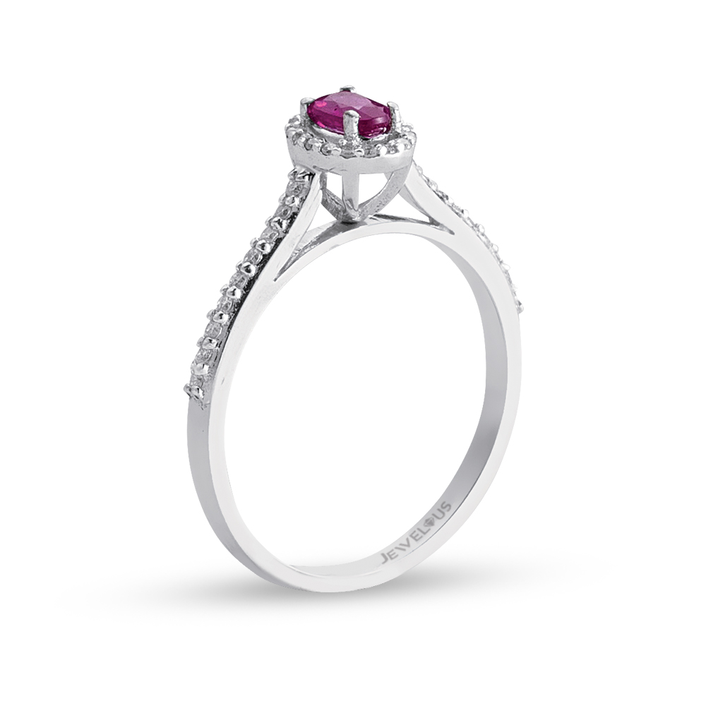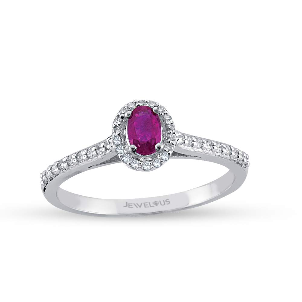 Ein traumhaft-filigraner Blickfang – das ist dieser MEINSCHMUCK Diamantring / Verlobungsring / Rubin aus 585er Weißgold. Bei dem Hauptstein handelt es sich um einen Rubin (ca. 0,26 ct.) im ovalem Schliff, welcher von strahlend, weißen Brillanten ( ca. 0,16 ct.) gerahmt wird. Die Brillanten sind zur Hälfte auf der Ringschiene im Verschnitt gesetzt. Sie werden begeistert sein! Die schmale Ringschiene gewährleistet ein angenehmes Tragegefühl. Dieser wunderschöne Brillantring eignet sich auch wunderbar als Verlobungsring oder als Geschenk!