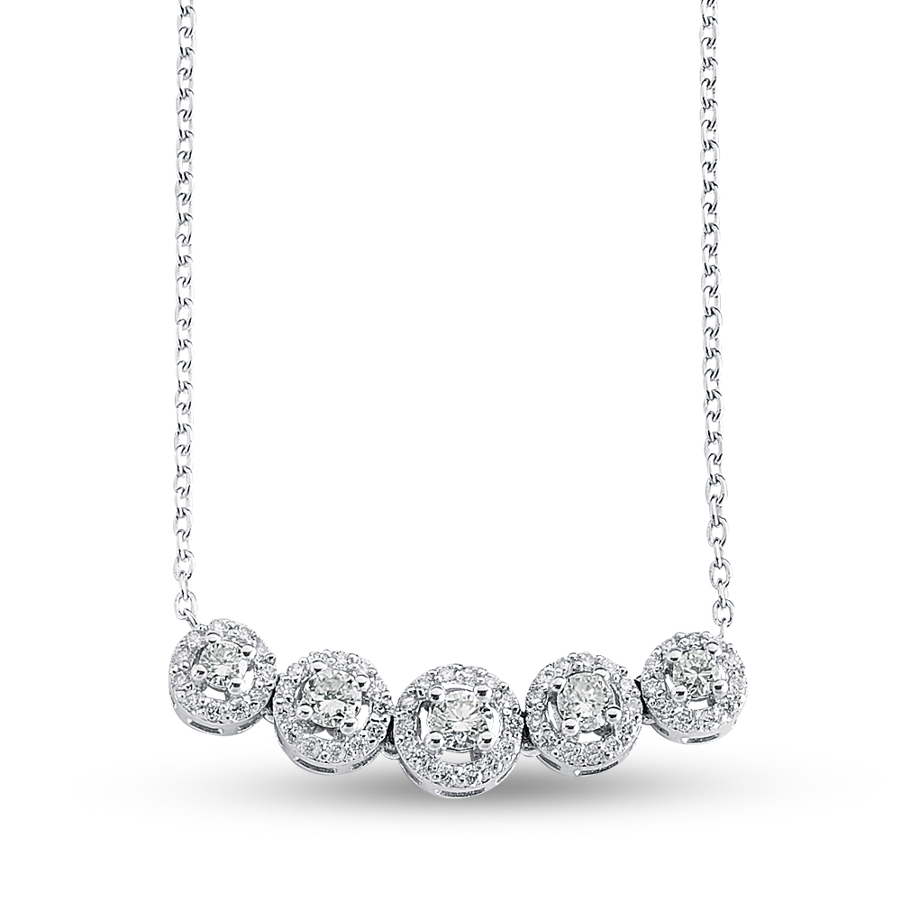 Zeitlos & Modern – 585er Weißgold-Kette mit integriertem kreisrunden Zierelement und geziert mit funkelnden Brillanten (ca. 0,49ct.). Das Echtgold-Collier besticht durch seinen modernen Charme: die leicht geschwungenen kreisrunden Zierelemente sind vollständig mit brillant funkelnden Diamanten besetzt und hat eine ungezwungen-lässige Wirkung, der man sich nur schwer entziehen kann. Dennoch sieht man dem Schmuckstück bereits auf den ersten Blick seine hochwertigen Materialien und die ausgezeichnete Verarbeitung an – formvollendet zeitgemäß. Die feingliedrige Ankerkette garantiert einen angenehmen Tragekomfort. Machen Sie sich selbst eine Freude, mit dieser wunderschönen Kette! Kleiner Tipp – in unserem Shop erhalten Sie auch die passenden Ohrringe!